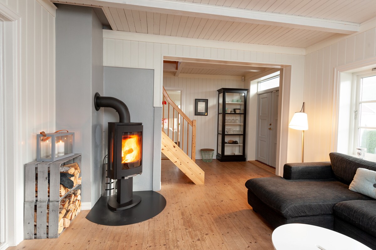 Stay in a charming countryside guesthouse with peaceful views, a spacious outdoor area, and thoughtful amenities. Start your day with birdsong, morning sun, and coffee on the terrace, and end it by the fire, taking in the view of forested hills. Plenty of berries and mushroom in the area. You're located midway between Kristiansand and Evje ca. 40 min to the Zoo, Sørlandssenteret, rafting, climbing and the Mineral Park. Hiking trails, swimming spots, and fishing lakes are close by.