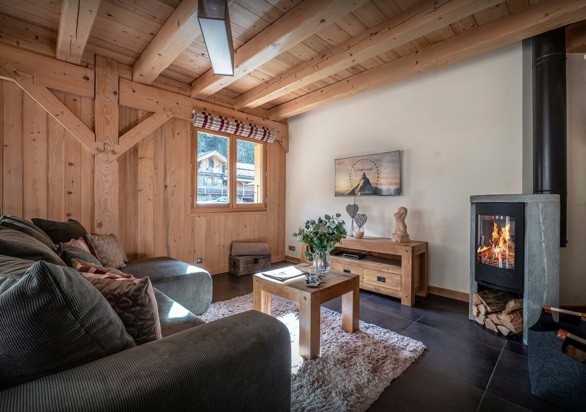 Charming Old Wood and Stone Chalet view Mont Blanc