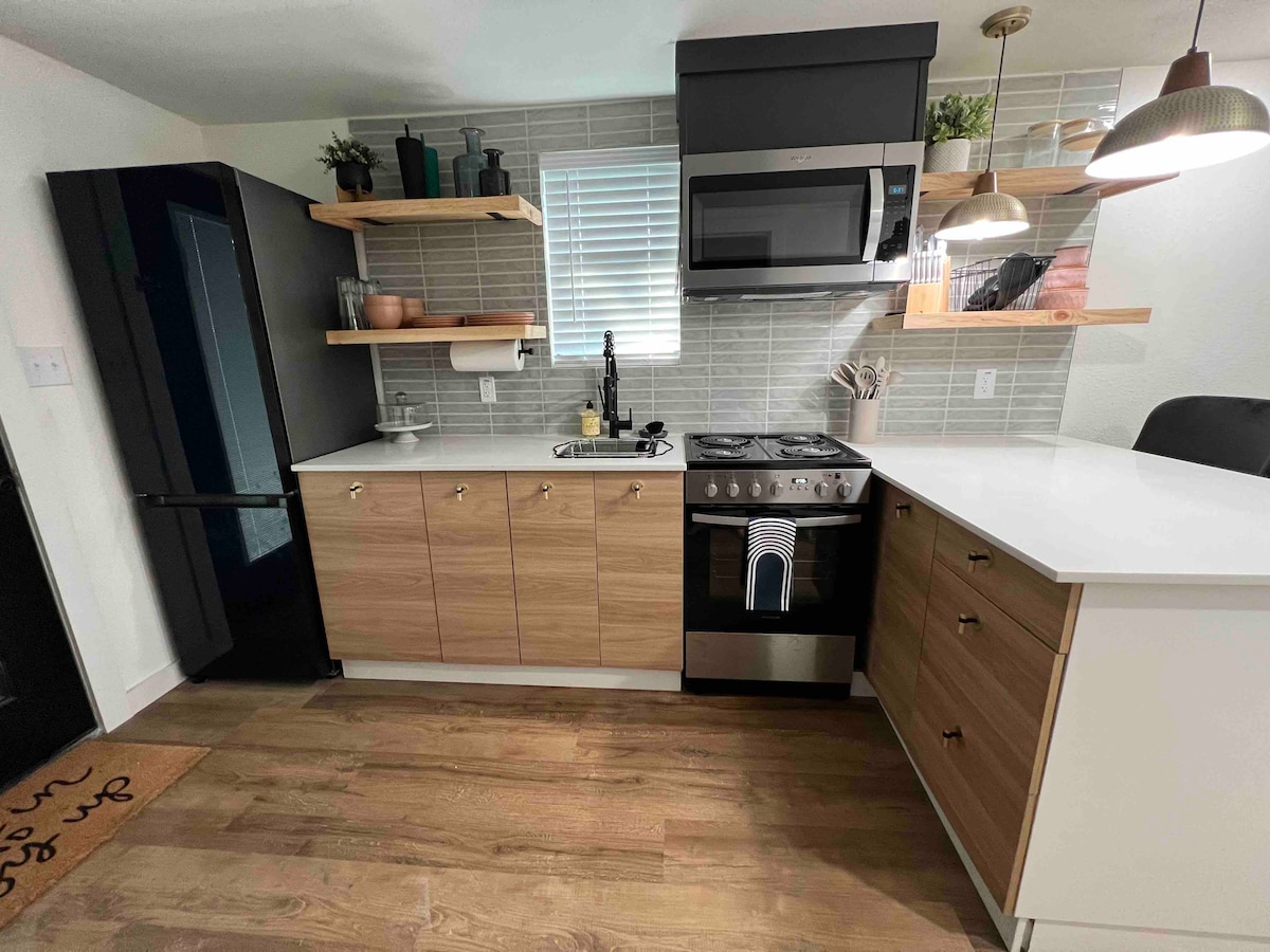 This adorable boho tiny home is in the heart of Temple’s newly established Eastern Historic District. Originally built in 1913 as railroad housing, this home has been completely restored and is ready for your stay. Home has modern features perfect for a couple looking to get away for the weekend or an extended stay. Located right across the street from Temple’s festival grounds and within walking distance from the vibrant downtown district. This is 1 of 4 homes, reach out for multiple bookings.