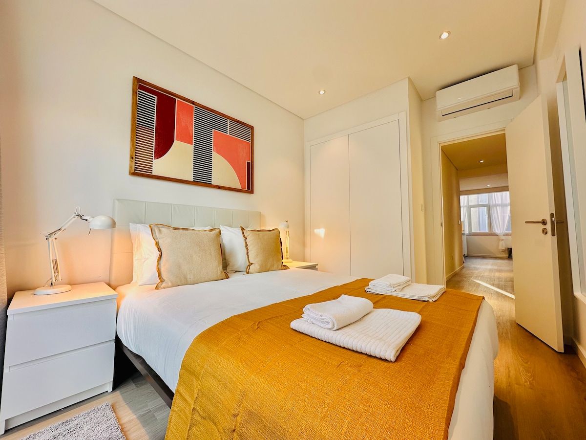 Apartamento reconstruído por arquitecto, excelente privacidade, exposição solar, com wifi, e praia a 150m. 1 suite com SPA e banho turco com aromaterapia. 1 suíte com terraço com vista mar, tela de projeção de cinema. Sala com vista de mar, rio, e terraço, onde poderá disfrutar de uma zona de estar e de um barbecue com grelha em ferro forjado. Perto de restaurantes, cafés e supermercado, e estação de comboio. Ar condicionado e piso aquecido em todas as áreas, TV 4K e box independente por suíte.