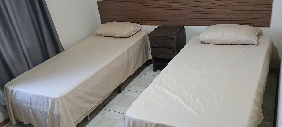 Beautiful apartment, all new furniture. - Rooms with remote-controlled fans; - screens on the windows; - Washer and dryer, microwave, refrigerator, air-conditioning; - retractable sofa in the living room, with 50-inch TV; - bathroom with shower stall, shower and cabinet with sink; - It has 1 parking space; - It has swimming pools (children's and adults'); - Barbecue grills; - 2 complete ballrooms; - Mobility gym; - Playground; - sports court; - A place to enjoy mate; - 24-hour concierge.