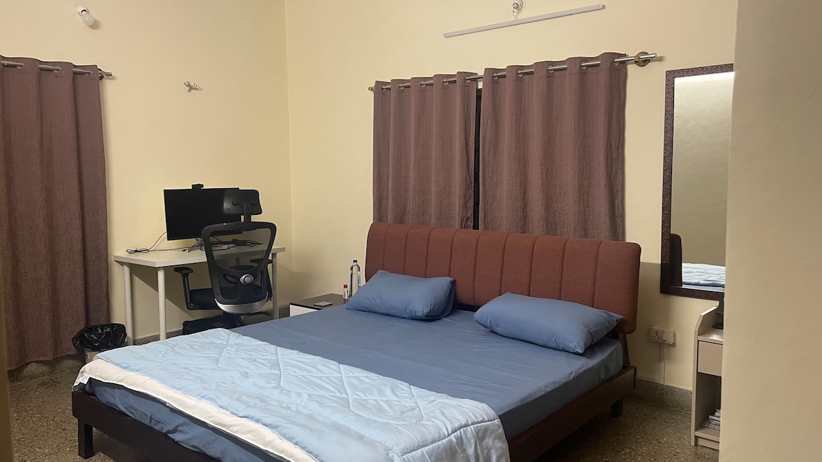 This fully equipped studio in the heart of Kaggadaspura is designed for comfort and convenience. With stylish interiors and thoughtful amenities, it’s a perfect spot for professionals, couples, or solo travelers. Inside, you’ll find everything you need: TV, WiFi, fridge, kettle, cooler, and cozy furnishings that make it feel like home. Step outside and you’re surrounded by local life — groceries, a tiffin center, and a Pan-Asian restaurant are right next door.