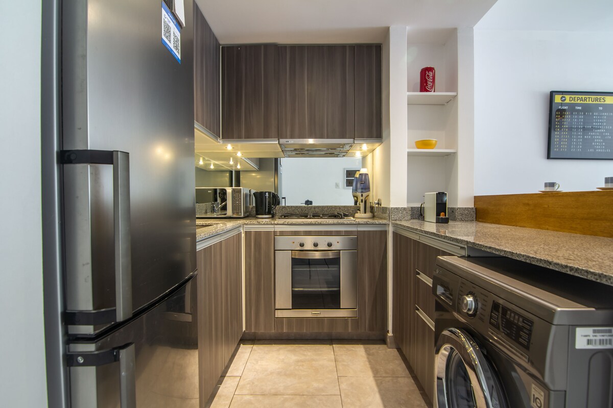 Enjoy our nice and unique apartment in Vicente López neighborhood. It is spacious and modern and you will feel at home just entering. It is ideal for 2 people with a bedroom, a light living room and an open kitchen. Ideal for long stays and remote work due to its brightness, spacious and also features first class equipment. Also balcony with outdoor furniture. Open Integrated Kitchen fully equipped with high end appliances and cookware. Apartment has an exclusive garage in the same building.