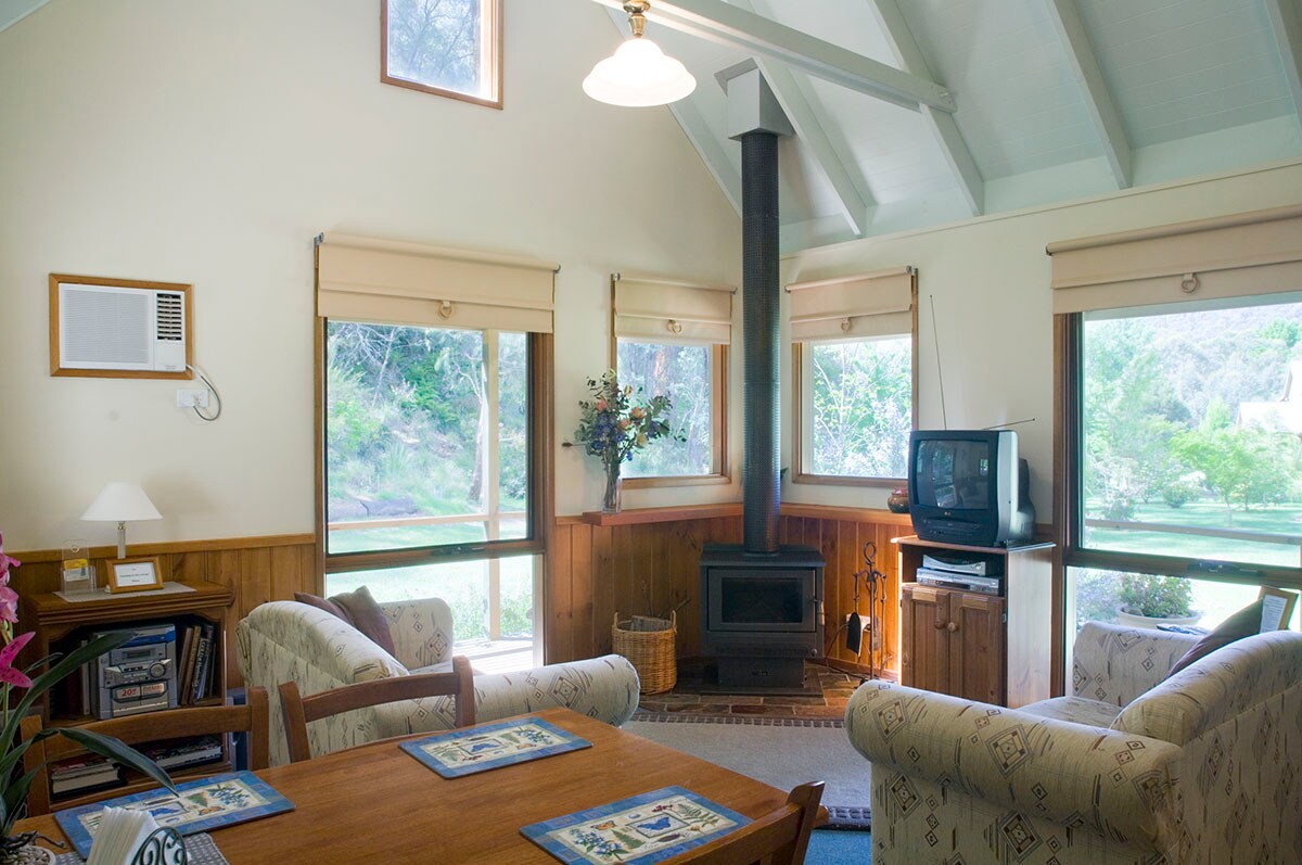 Shady Brook 2 bedroom alpine spa cottage was purpose built to fit into the historical high plains environment and its rich history. The cottage is craftsman built superbly furnished and fitted out set back for seclusion and privacy. Surrounded by landscaped gardens, Mountains as a backdrop and the Ovens River as your entry less than 1 km from the centre of Harrietville. Its more than accommodation its a unique holiday experience ideally situated no matter what activities you choose.