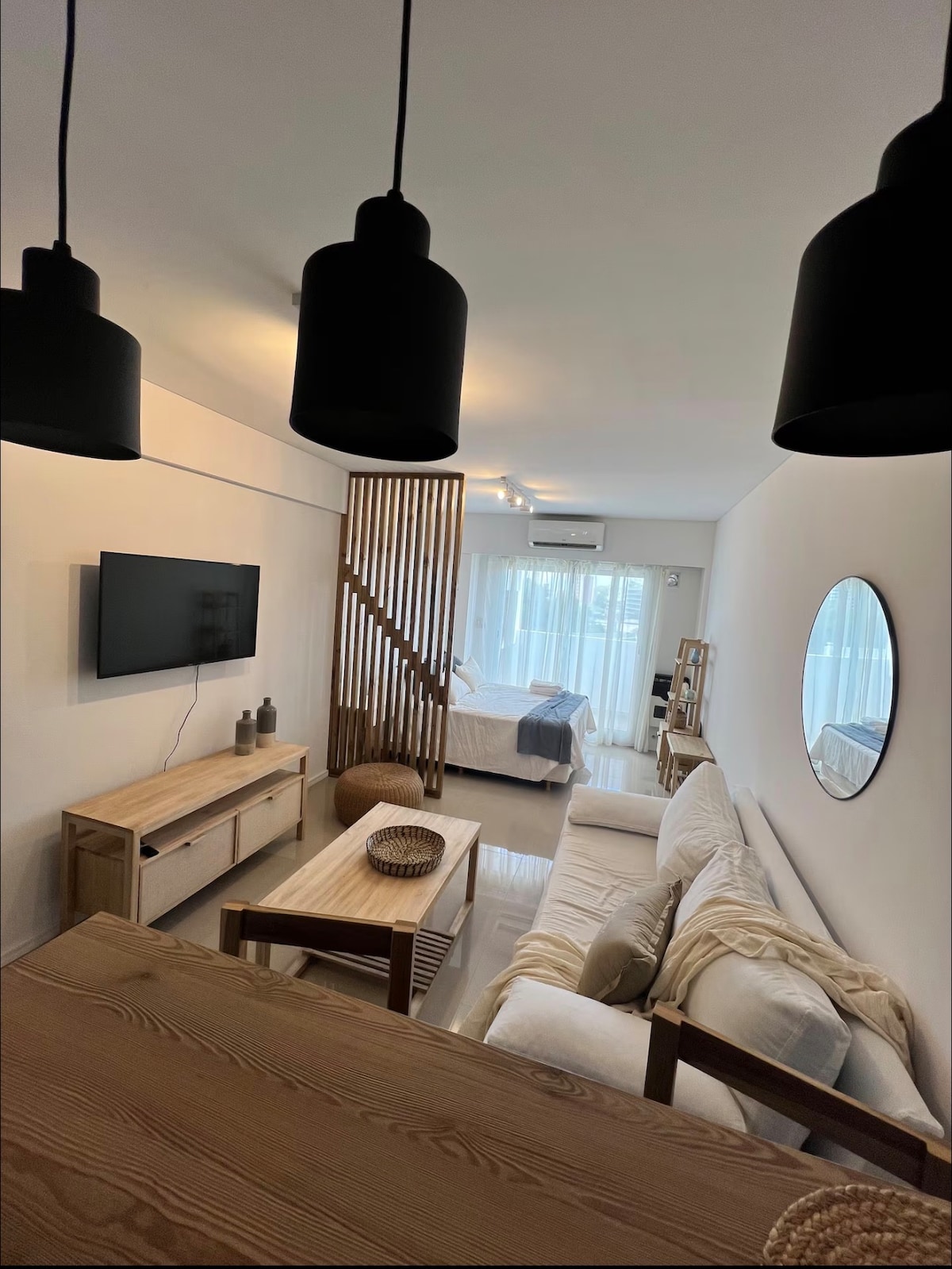 🏡 1-bedroom apartment in Puerto Norte 🌊 River view 🅿 Parking spot in the building 🏊♂️ Swimming pool & solarium 📶 Fast and stable WiFi 📺 Smart TV with cable ☕ Nespresso & fully equipped kitchen 🍽 Microwave, oven, fridge, dishes 😴 Memory foam pillows 🛁 Full bathroom with bathtub ❄ A/C (hot & cold) 🧼 Bed linen and towels included ✨ Bright, modern, and super comfy ⏰ Flexible check-in/out (upon request) 📍 Safe area with security 24/7 and river walk SAME DAY BOOKINGS PLEASE ASK US FIRST