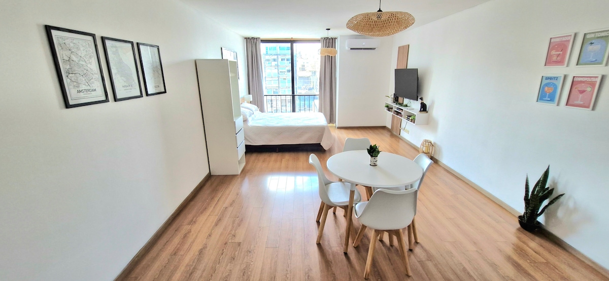 Wake up in the heart of the historic center, steps from the Monument to the Flag and the Paraná River. This modern and bright apartment offers the ideal combination of location, comfort and tranquility to enjoy Rosario like a local. With 33 m² carefully designed, it's perfect for rest, work or couples getaways. The space has hot/cold air conditioning, a Smart TV and fast WiFi, all ready to make your stay comfortable from the moment you arrive.