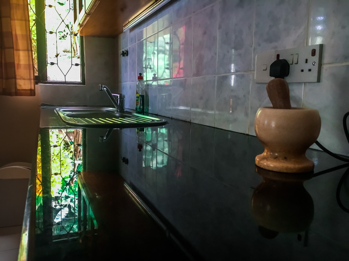 Beautiful, simple and cosy self-catering apartment with great sea view - open plan kitchen/sitting and sleeping area with separate bathroom and large terrace. It is located near the stunning Anse Royale beach in the south-east of Mahe, Seychelles, sleeps 3. Island style building - terrace doors open fully, wooden doors and windows, high ceilings, natural ventilation and A/C. The apartment is equipped with everything you need during your stay but no daily cleaning service or towel/linen change.