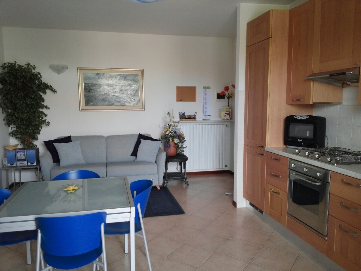"Residenza al borgo" welcomes you to romantic Verona. In a recently renovated apartment, with new furniture, for relaxing or business stays. You will find 1 bedroom with a double bed and 1 bunk bed, accommodating up to 4 people. Equipped with every comfort and WiFi. Guests can relax on the terrace before immersing themselves in the history and wonders of Verona. The apartment is located near the Verona Fair, about 3 km from the historic center.