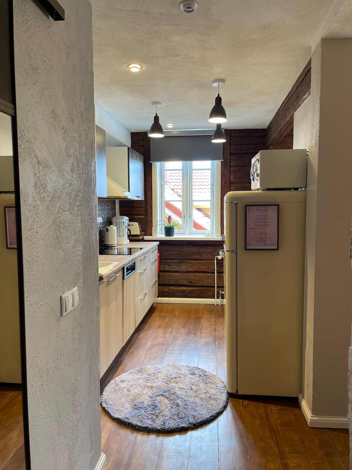 Cozy 50m2 loft with 2 bedrooms and living room with fireplace and modern kitchen is located on the third floor of a wooden building house (built in 1879) which is located on the Old Town's Special Conservation Zone, right in the centre of Viljandi and close to everything - cafés, lake and castle ruins. The house is freshly renovated and has central heating and modern ventilation but still with old details that are characteristic to Viljandi and adds a historic flutter and a little adventure.