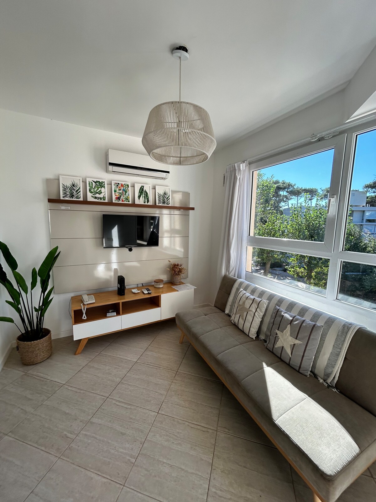 Beautiful 3-room apartment in the Boreas Cariló building, 100 meters from the center, where shops and restaurants are located, and just 300 meters from the beach. The rate includes daily cleaning service, with sheets and towels, and a beach set of two lounge chairs and umbrellas. Large living room, two bedrooms, one en suite with dressing room, kitchen equipped with dishwasher, Nespresso, two full bathrooms, balcony with barbecue and fixed covered parking.