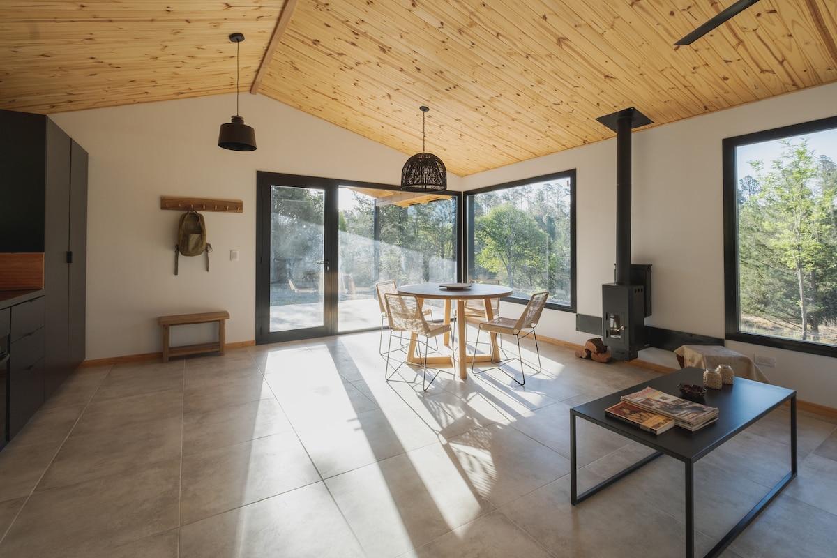 Relax with the whole family in this quiet and comfortable cabin at the foot of the mountain, listening to the birds sing. The house is comfortable and modern, decorated with light colors. Functional to disconnect and rest for a few days at any time of the year.