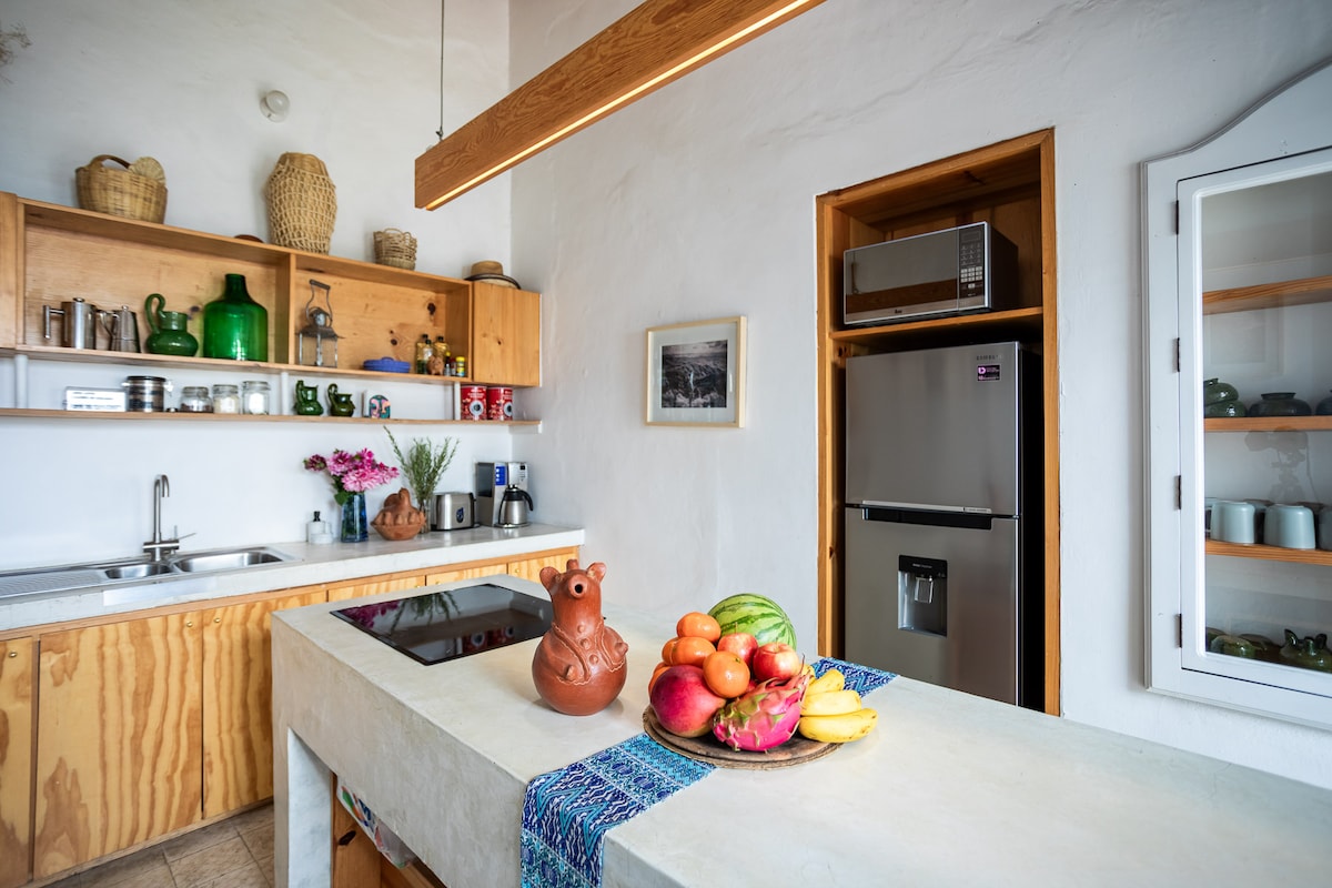 A beautiful refurnished 17th century house with modern comfort and the best location in the center of Oaxaca city, stylishly decorated with a great atmosphere. A few steps from the greatest cultural attractions such as the Ex Convent of Santo Domingo de Guzmán, the Ethnobotanical Garden, museums, galleries, several top-notch restaurants, mezcalerias, coffe shops, markets and all the touristic attractions.