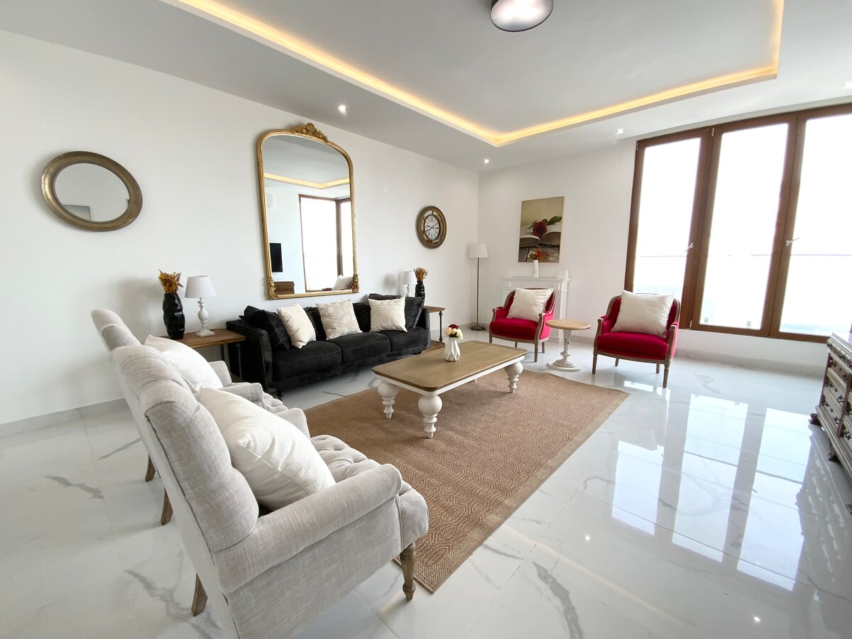 Spacious 150 m2 very comfortable apartment in a quiet area Large balcony with sea view, not overlooked 3 bedrooms that can accommodate 6 adults and 1 baby 2 bathrooms 1 guest toilet Quality equipment and furniture Equipped kitchen ++ Dressing room & TV in bedrooms 3 queen beds + 1 umbrella bed Electric shutters in every bedroom 6 Air conditioners as well as 3 fans Wi-Fi in all apartments 24-hour building guard