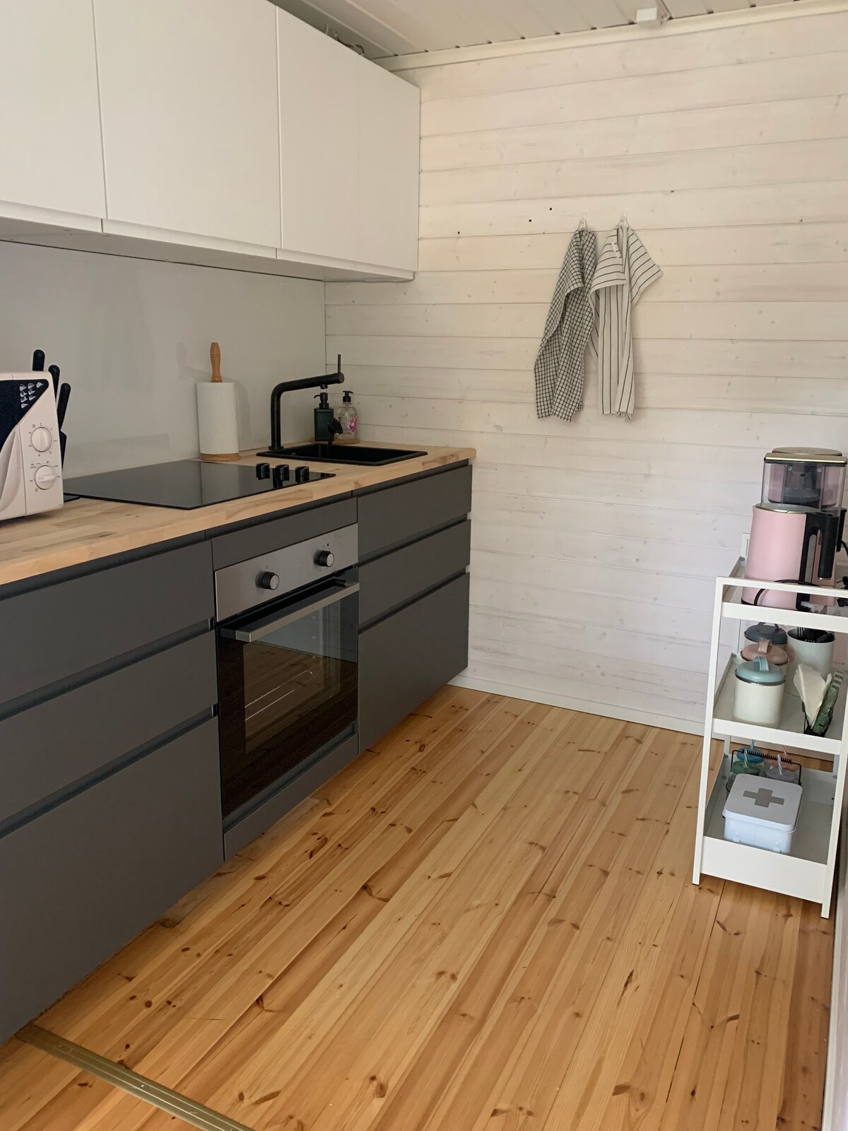 When you long for a complete escape from everyday life, here it will succeed and everyday things will take on a new meaning. The electricity-free cottage gives you the opportunity to be present here and now. A separate summer kitchen on top of the rock with amazing views is a point of pleasure. Gas stove and grill available. There's a bed for one in the barn. The sauna has a loft and a pull-out sofa bed. You also have access to a rowing boat and a paddle board. The hot tub heats up for a separate fee. There is a campfire place on the beach. There are a lot of stairs in this place, so please note when booking.