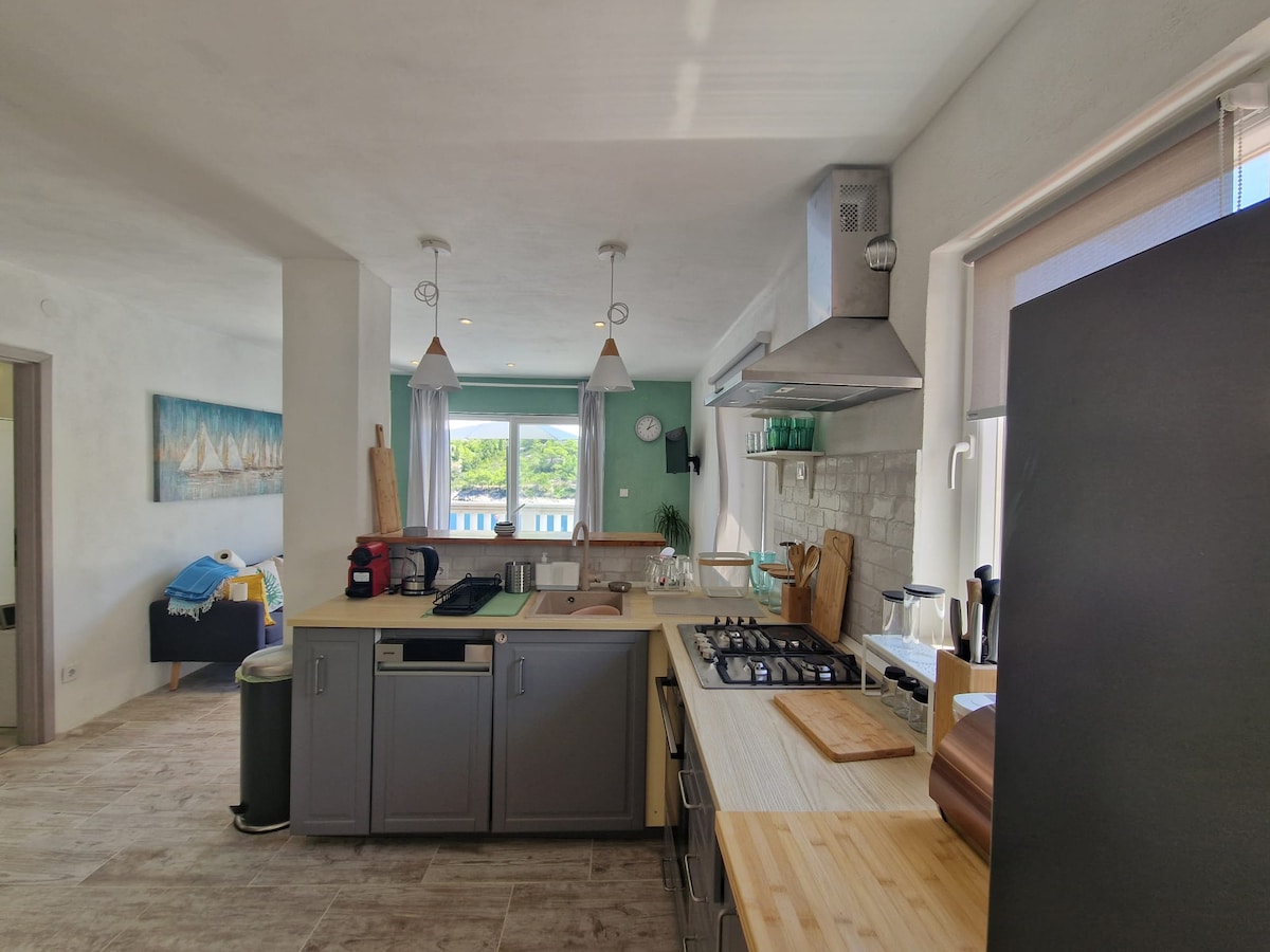 This lovely studio apartment is located in the old part of Vis town - Kut, ona very quiet location. It has stunning seaview from the terrace and sea is just 2 minutes walking distance. Apartment is refurnished in 2018 and it is fully equiped, air-conditioned, has TV, wi-fi and there is free parking place above the apartment. The local shops,bars and restaurants are just 5min stroll away.