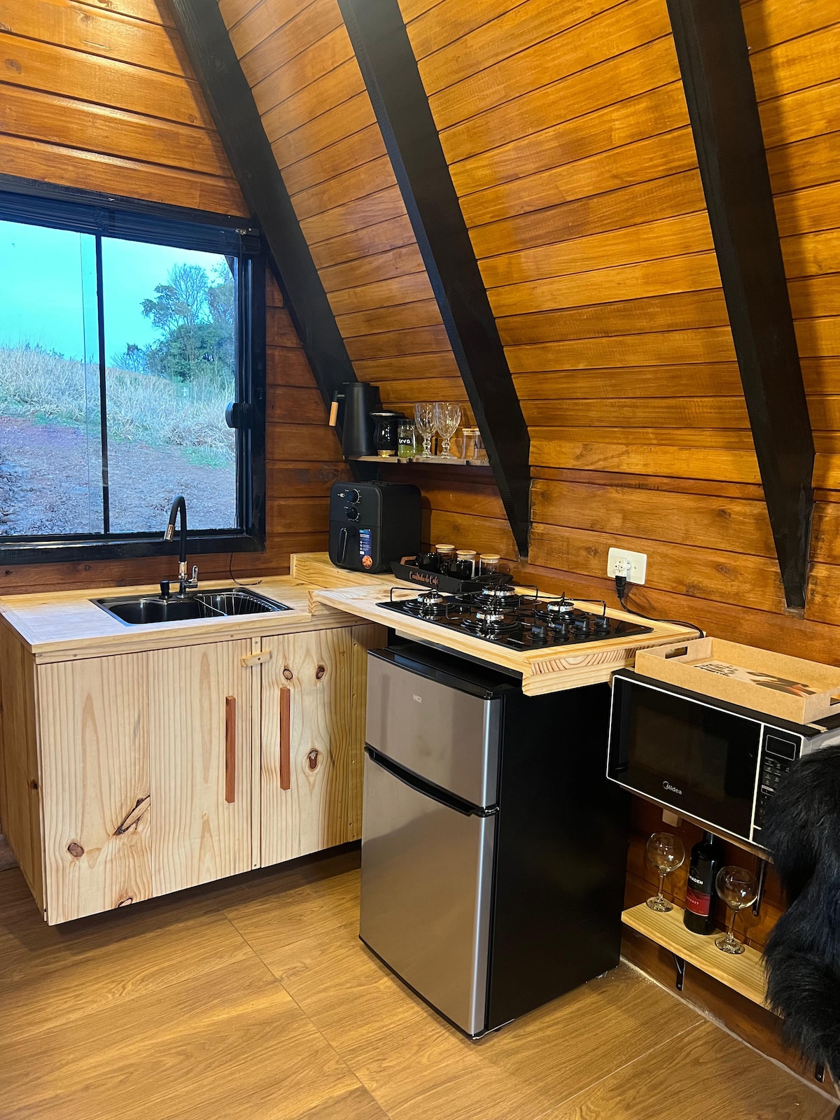 We are an Inn with 3 chalets, a romantic, intimate and perfect lodging for couples to experience moments together, whether to celebrate special dates or enjoy a cozy atmosphere to rest and disconnect from the busy routine Simplicity and details further enrich the experience. It contains a whirlpool with a skylight, fireplace, full kitchen to prepare meals and a fire pit.