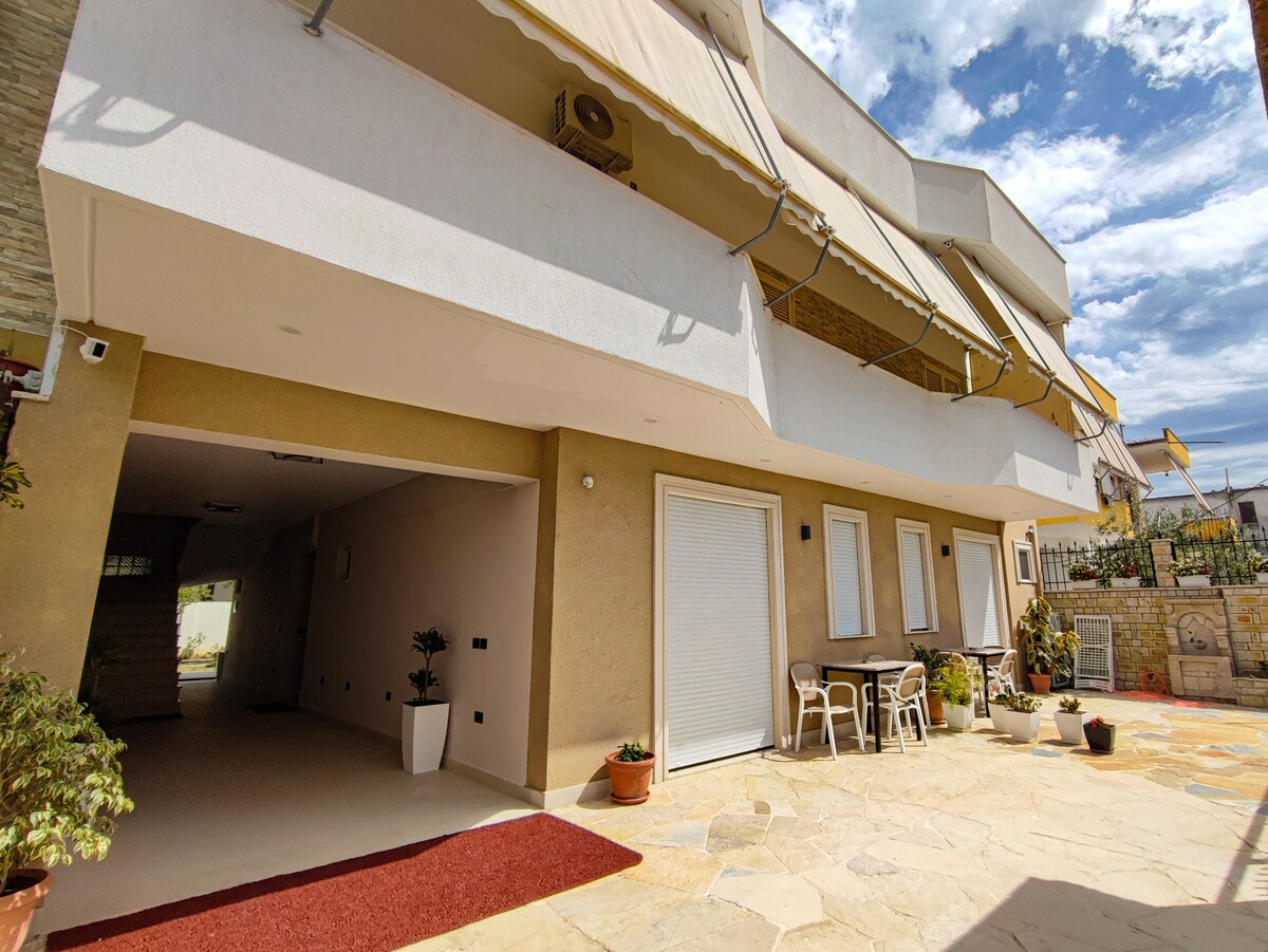 The building is located in a quiet neighborhood with a 200 m distance from the sea and 5 min walk from forest of Soda. Is family friendly has a beautiful garden and has all the necessary amenities to make you stay comfortable, stress free and beautiful.