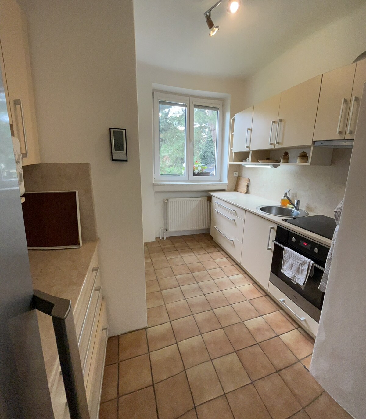 Apartment in a quiet part on the outskirts of Pilsen on the ground floor of a flat house with its own entrance and terrace, surrounded by a large park. The city center can be reached both by public transport and by car within 15 minutes Free parking and facilities on the plot.