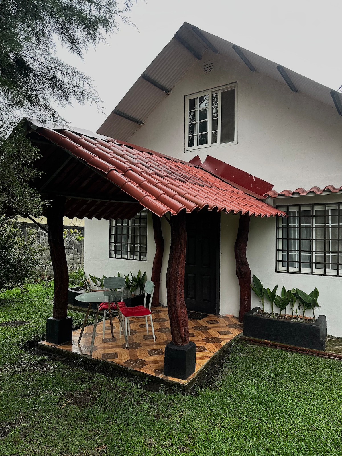 A small cabin overlooking the mountains to share with those you love most🏡⛰️. No luxuries, but with everything you need to rest, share and feel at home✨ We offer: •Location: 6 minutes by car from the Boquete Center 🚗 • 2 bedrooms with full size beds • 1 queen size bed in room #2 (open area) •Outdoor parking •1 Ground floor bathroom •Equipped kitchen • 65" TV •Wi-Fi. •Trampoline for the kids •Terrace with gas and wood BBQ •Large Garden