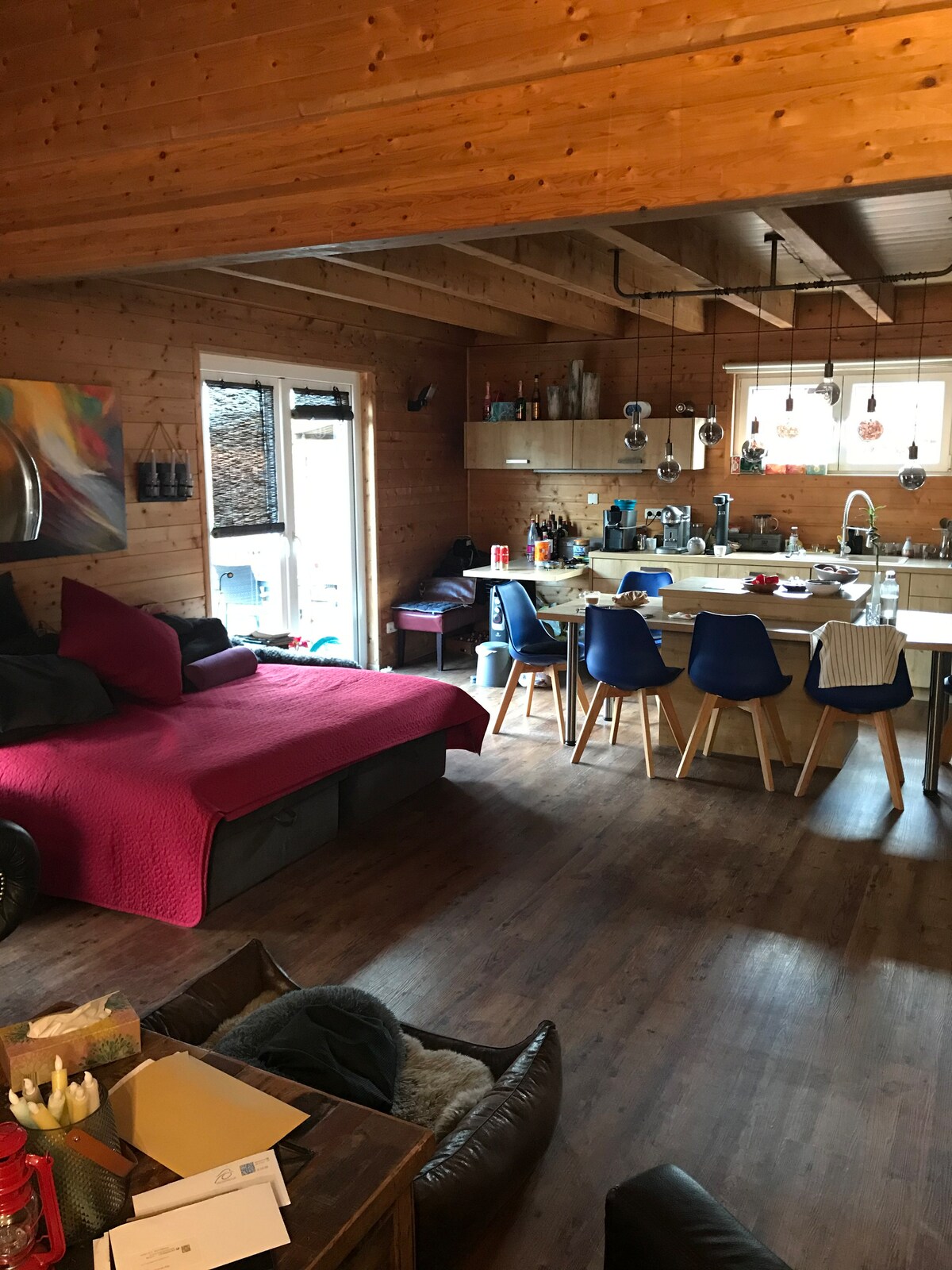 Relaxation, recreation and pure nature - Welcome to the Vulkan Lodge! The Vulkan-Lodge is a unique vacation home with up to 5 beds in the middle of the Volcanic Eifel. The idyllic Rieden Forest Lake is a few minutes' walk away. The following highlights await you: - Fully equipped - Kitchen & outdoor terrace with grill - Bathtub, smart TV, table soccer and much more - Direct path to the forest lake - Various hiking and cycling trails - Near Lake Laach and Nürburgring