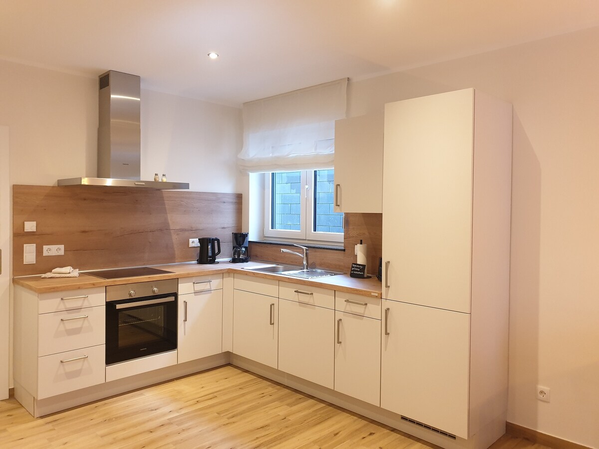 Spacious apartment with 2 bedrooms in a listed townhouse. Central yet quiet. 3 minutes from the train station - bus stop at the house. 5 minutes to the pedestrian zone. 30 minutes by car to the legendary Nürburgring. A family-friendly, uncomplicated atmosphere awaits you in a detached house. Ideal for couples, solo travelers, business travelers, & families. Free parking on the street.