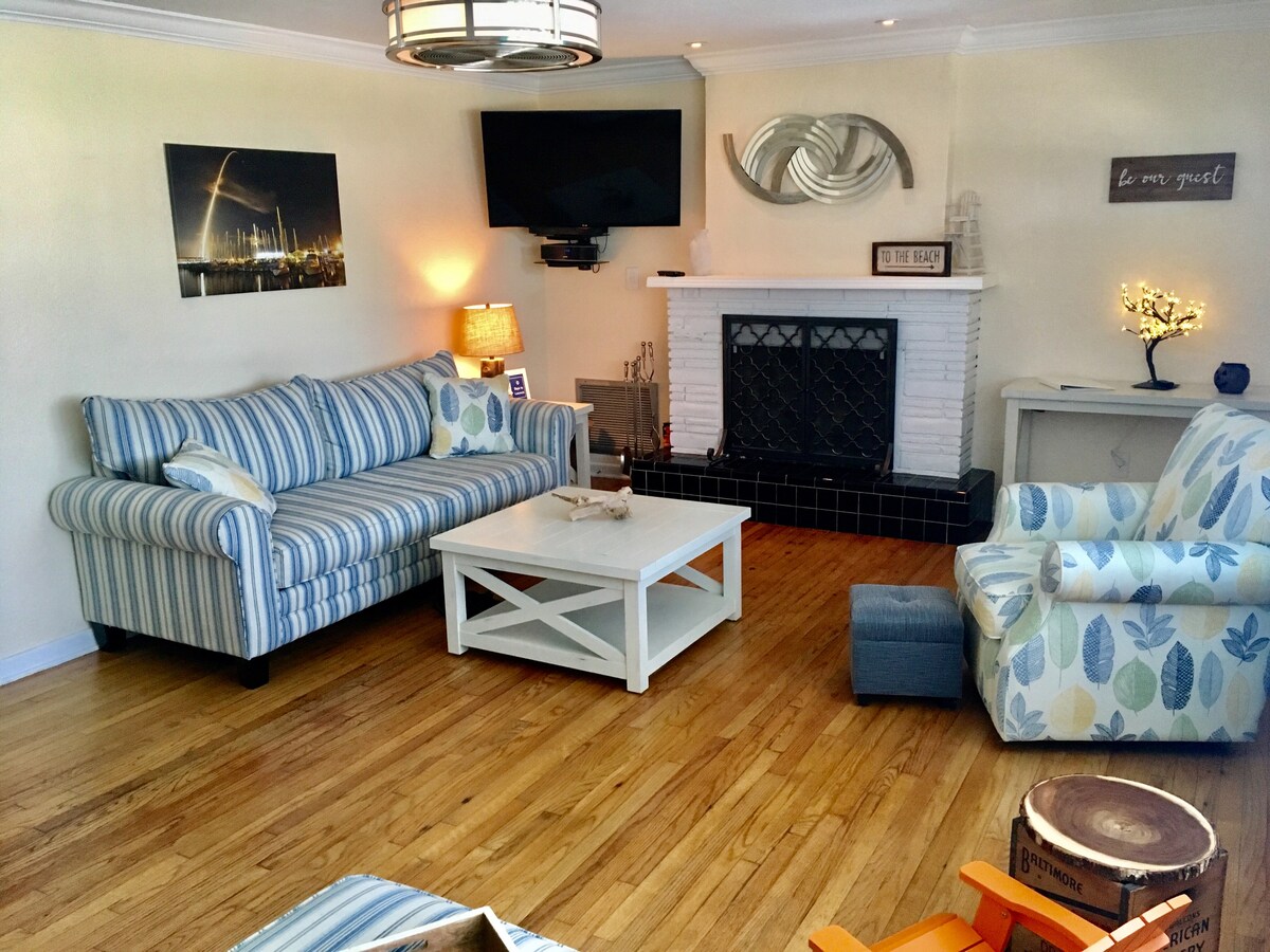 MidCentury Beach House - King Bed - Walk to Beach