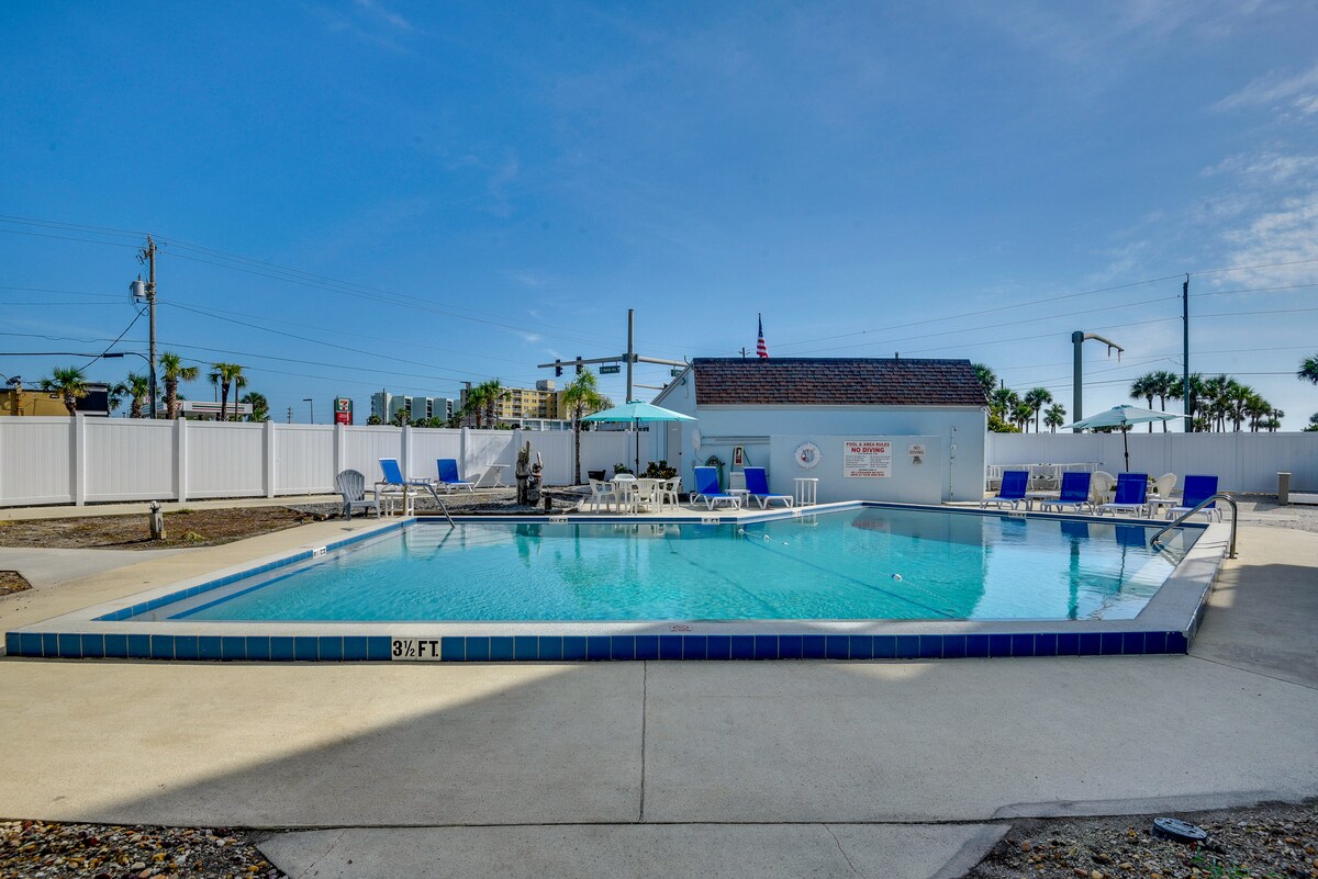 Located just steps away from the sandy shores of New Smyrna Beach, this 1-bathroom studio vacation rental offers the perfect retreat for a coastal getaway. With its ideal location and close proximity to several restaurants, shops, and historic attractions, you'll have endless opportunities for relaxation and fun! Spend your days exploring the surrounding area before heading home to cool off in the community pool. After a long day of adventure, enjoy a relaxing night at this cozy condo.