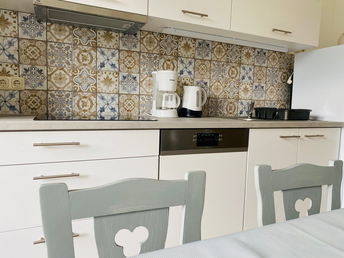 We are very excited to welcome you to our newly renovated house in Vonyarcvashegy with quiet and friendly neighborhoods. The apartment has two bedrooms, a living room, kitchen and two bathrooms, comfortable for 8 people. Bright spaces, nice interior, and a well-kept garden await you. The beach is just 800 meters away and offers a unique experience of the beaches of Lake Balaton with its sandy beach, surf school, water slides, giant slide, children's pool, volleyball and beach handball pitch.