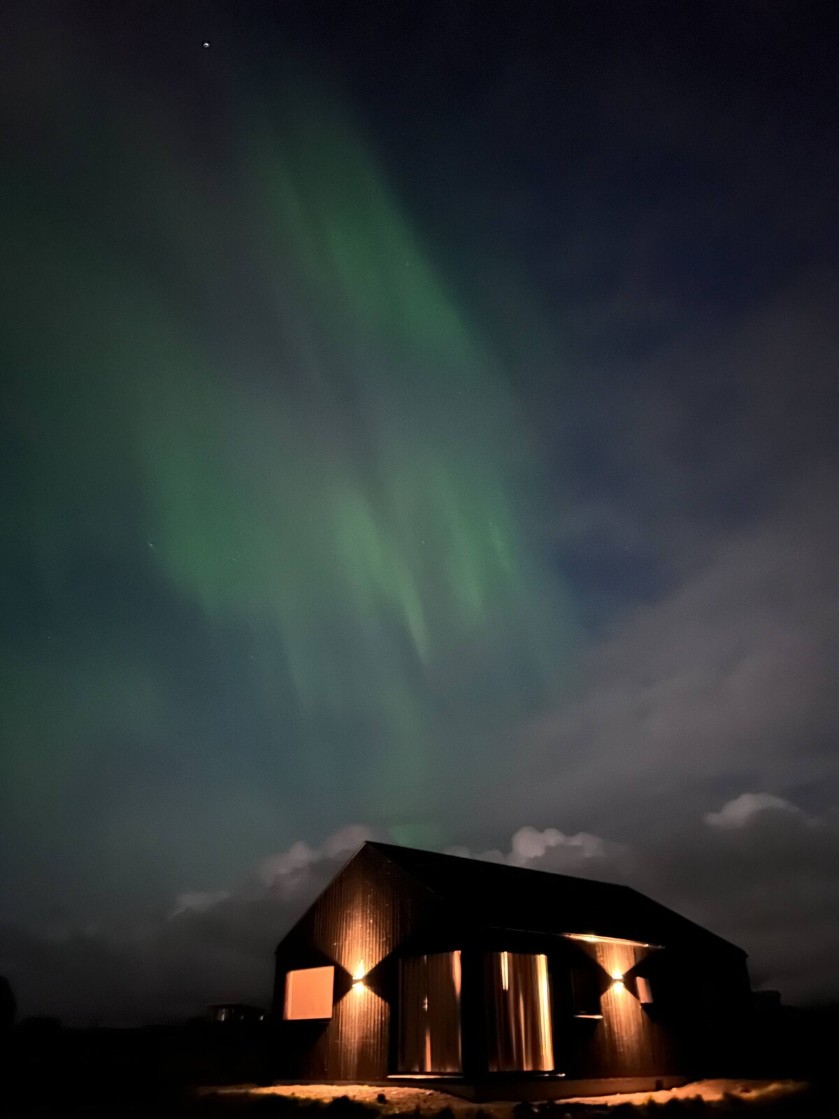 This getaway is very unique and secluded. It has spectacular panorama mountain view over two of Iceland's most famous volcanos and fantastic northern lights sightings. The house is cozy with lots of windows for enjoying the view. Sleeping space for 4 people, a comfortable full size bed and a luxury sofa bed. This place has a lot of character and Icelandic artwork on the walls also powerful wi-fi and a smart tv. Private washing room with washer and dryer.