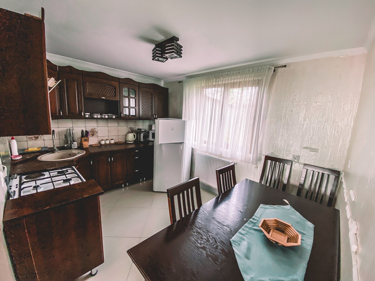 Relax from the hustle and bustle by staying in this unique and cozy home with a magnificent view of the unique Carpathian mountains of Pip Ivan Marmarosky and Petrus. Large house with terrace, veranda, hot tub, cold bath, sauna, barbecue area with facilities, trampoline for children and much more for a comfortable stay. A trout pond on the territory. Preparation of the tub and sauna is free.