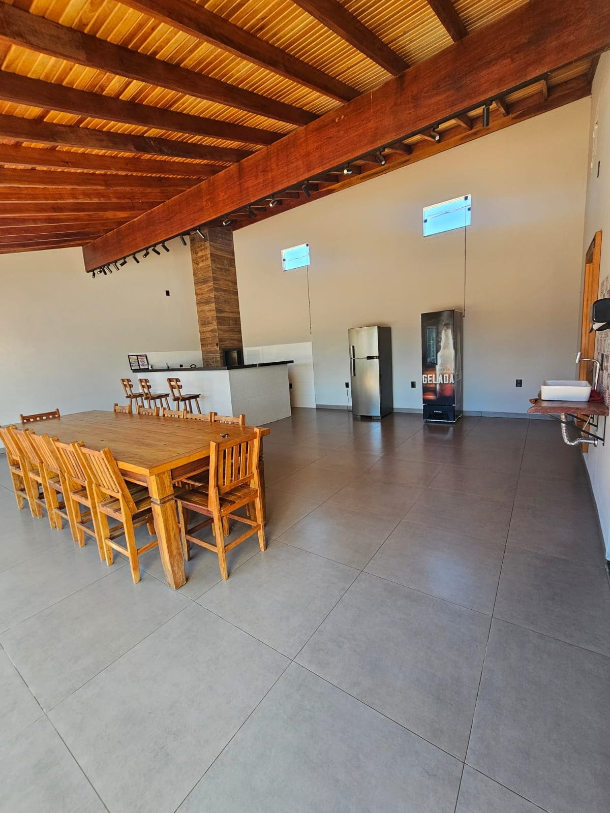 SEARCH FOR LEISURE AREA 929 IN G.O.O.G.L.E SO IT IS FASTER ✔2 freezer 1 frost-free duplex refrigerator; ✔️1 gas cooktop stove; ✔️1 Microwave; ✔2 bedrooms with 4 bunk beds ✔1 bathroom with Box and electric shower; ✔️1 Air conditioner (separate) ✔7 wooden tables and 35 chairs; ✔ 24 Tramontina colorful chairs and stools; ✔3 Stainless steel loungers; ✔Garage for 2 to 3 cars; ✔Multiple fans; Electric✔ Fence; ✔Security cameras; led✔ TV; ✔Wifi 📌N has utensils;