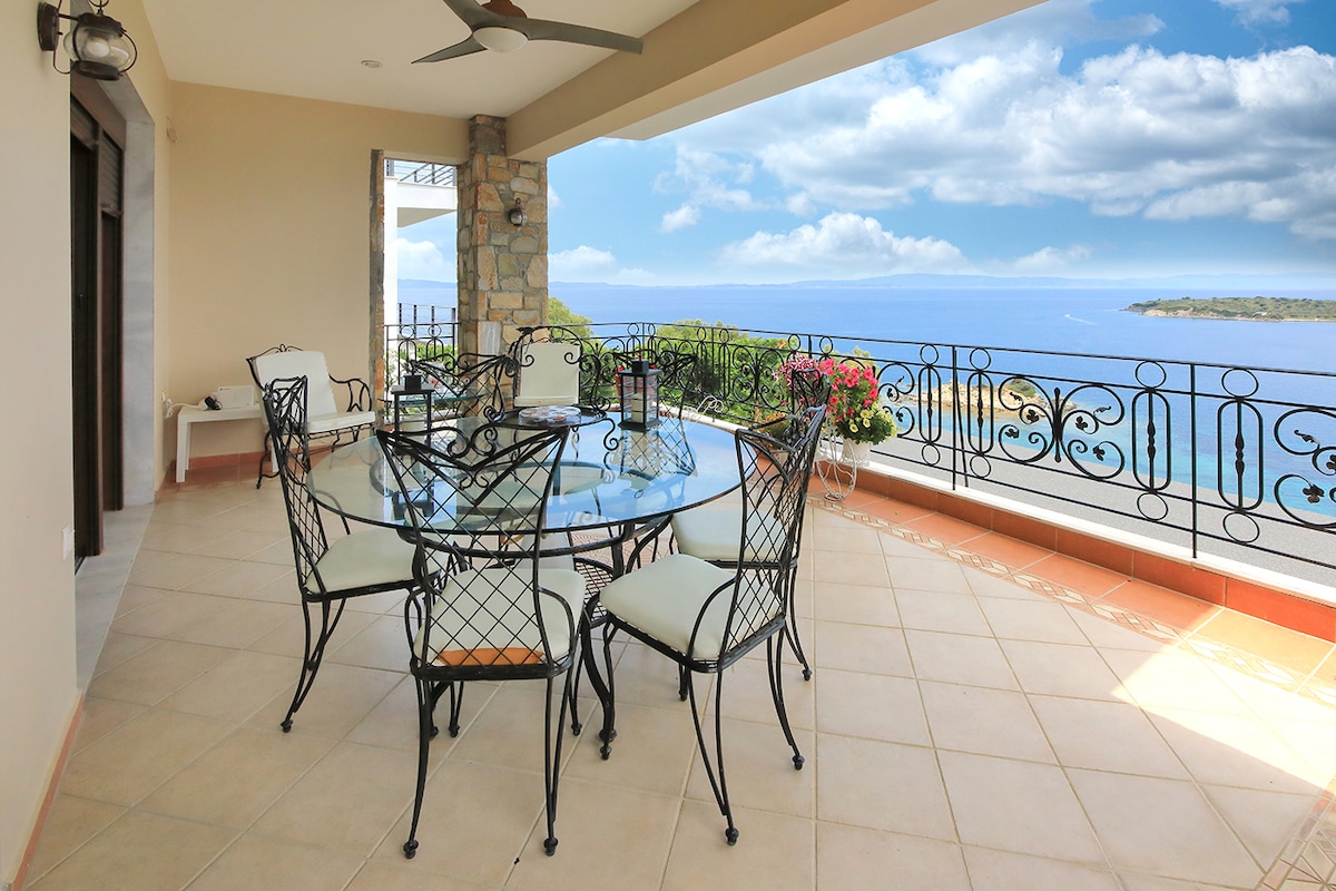 Take it easy at this unique and tranquil getaway. This 2 bedroom 2.5 bath is perfect for a group of 4 to get away and forget the world. Enjoy multiple balconies with unique breathtaking views of the Diaporos islands and Mt. Athos. There is a private little beach at the bottom of the hill that is pebble (warning it is a little bit of a hike). Home is equipped with a kitchen, living room, and dining room. Each bedroom has it's own on suite bathroom. A/C, and screens to keep everyone comfortable.
