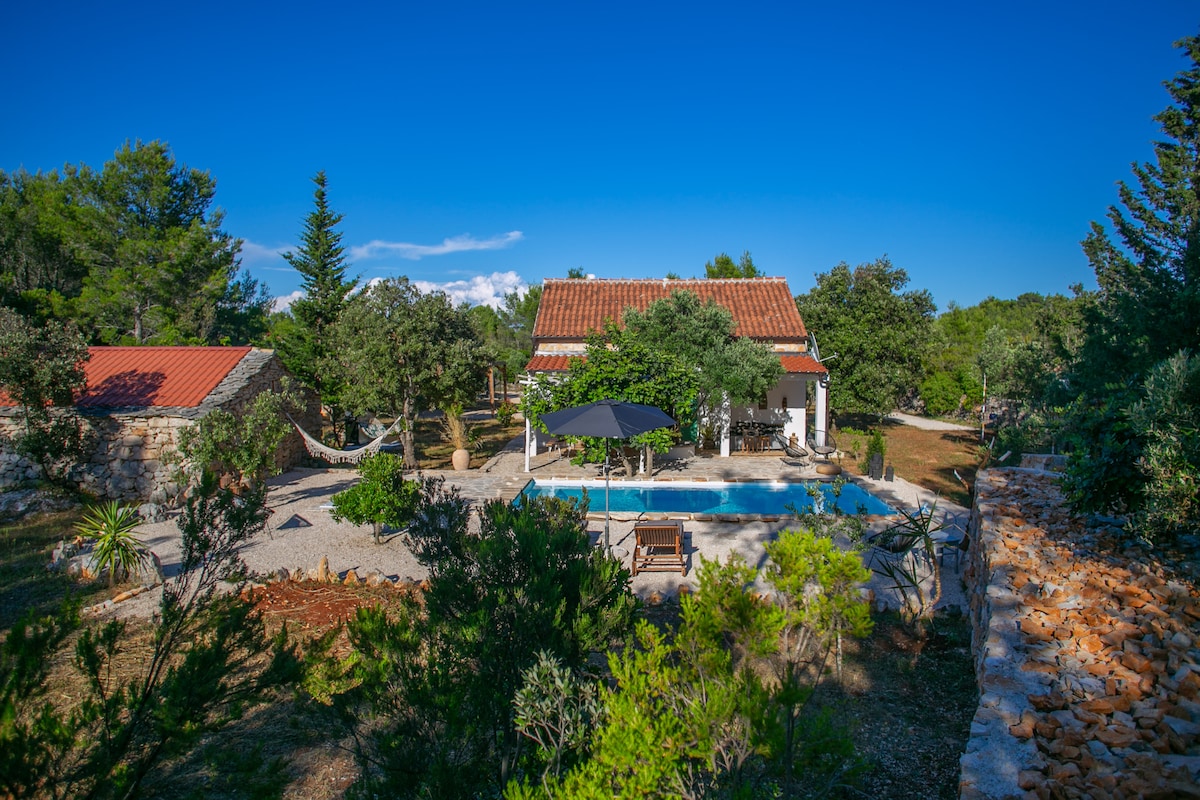 Escape to our solar-powered rustic retreat on Hvar, located about 8 km from the town of Stari Grad. Surrounded by nature, our eco-friendly haven offers tranquility and modern comforts. Relax by the pool, bask in the Mediterranean sun, and immerse yourself in the island's beauty. Explore the Stari Grad Plain UNESCO site just 2 km away. Experience serenity and rustic charm at our sustainable getaway. Book your stay and embark on a journey of discovery.
