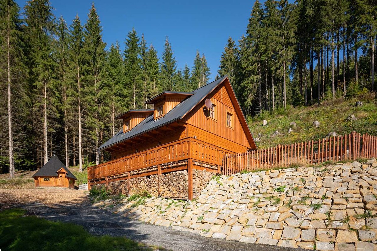 Zbavte se stresu a napětí každodenního života! Navštivte luxusní chatu na Ostravici, v samém středu malebných Beskyd a užijte si pohodu, čistý vzduch a přírodu. Nechcete lenošit? Aktivně poznávejte krásy okolí na kole, pěšky či na lyžích. Chata má 1 velkou podkrovní ložnici (4x lůžko pro 2 osoby) s balkonem, společenskou místnost s jídelním stolem a pohovkou, plně vybavenou kuchyň. Je zde wifi, smart TV a krb. V zahradě využijete pergolu se zahradním nábytkem, gril, venkovní saunu a vířivku.
