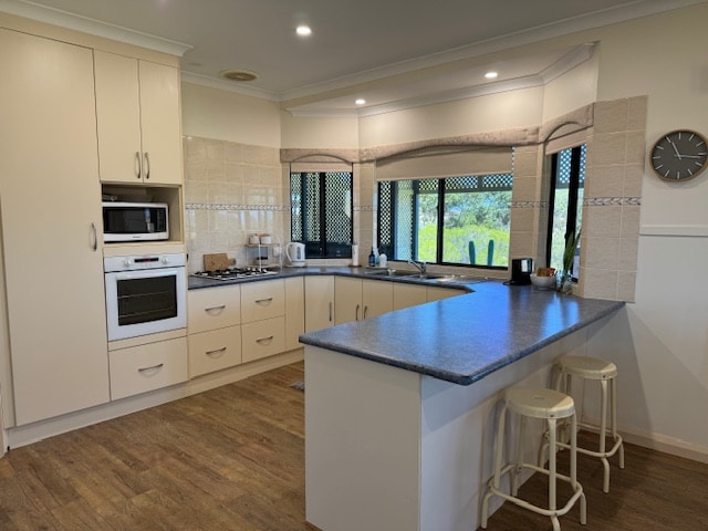 Brand new, modern 2-bedroom accommodation offering peaceful country living with stunning views. Located just 20 minutes north of Geraldton, close to Coronation Beach—one of the world’s best spots for kite- and windsurfing, with food van on weekends. Event locations like Nukara Farm and Nabawa Valley Tavern are nearby. Pets are welcome if they bring their own bed and are strictly kept off the furniture. undercover shed space. Relaxing getaway with all the comforts of home.