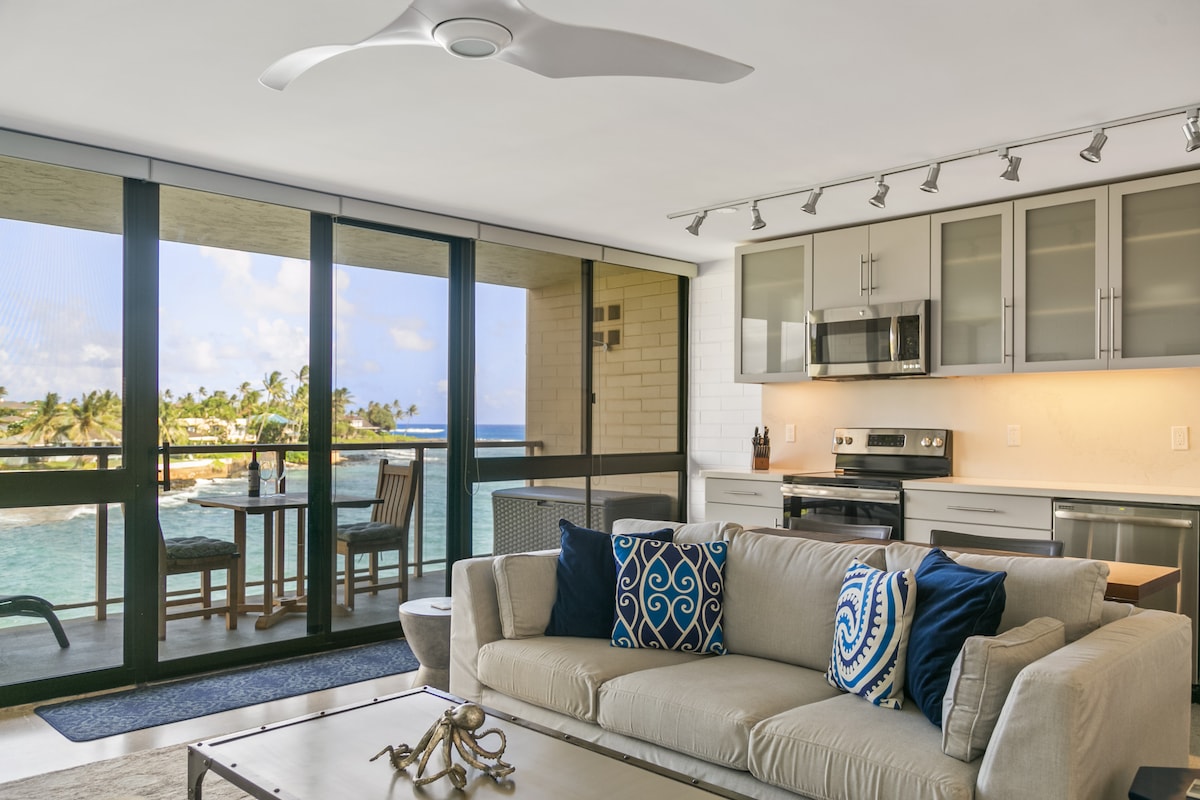Kuhio Shores 319: Oceanfront in Poipu with A/C!