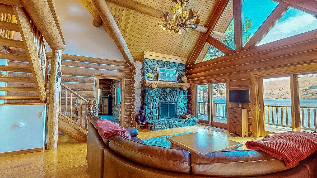 The Golden Saddle is a pet-friendly Wallowa Lake lakefront vacation rental on the west side in Joseph, Oregon. This custom 4BR/3BA lakefront log home sleeps 10 and features a king suite with jacuzzi tub, private seasonal dock, lake-view deck, coffee bar, stone fireplace, pool table, Wi-Fi, washer/dryer, and parking for 3. Perfect for families or couples seeking a relaxing Wallowa Lake getaway. Winter travel: 4WD, chains, or traction tires strongly recommended.