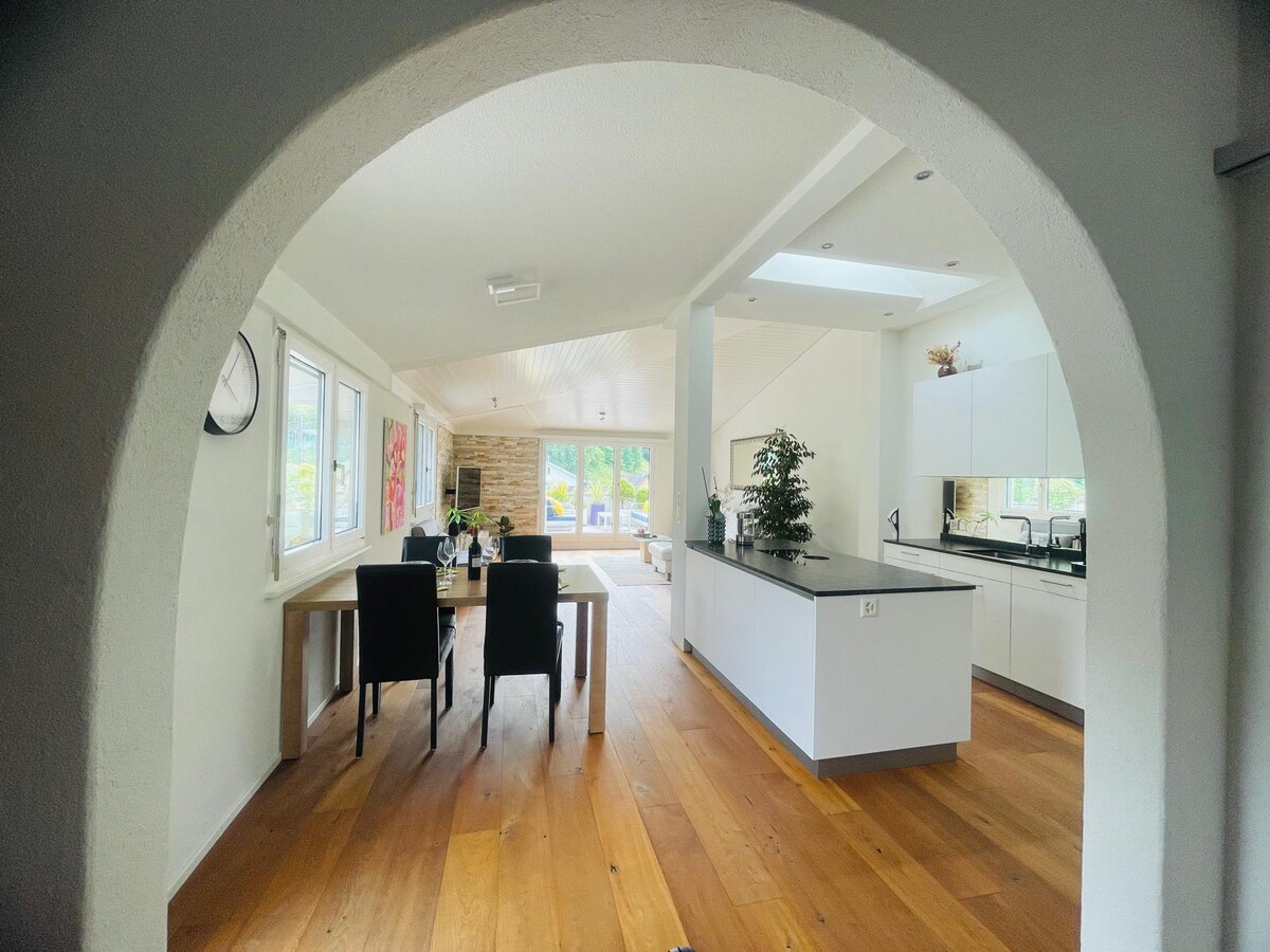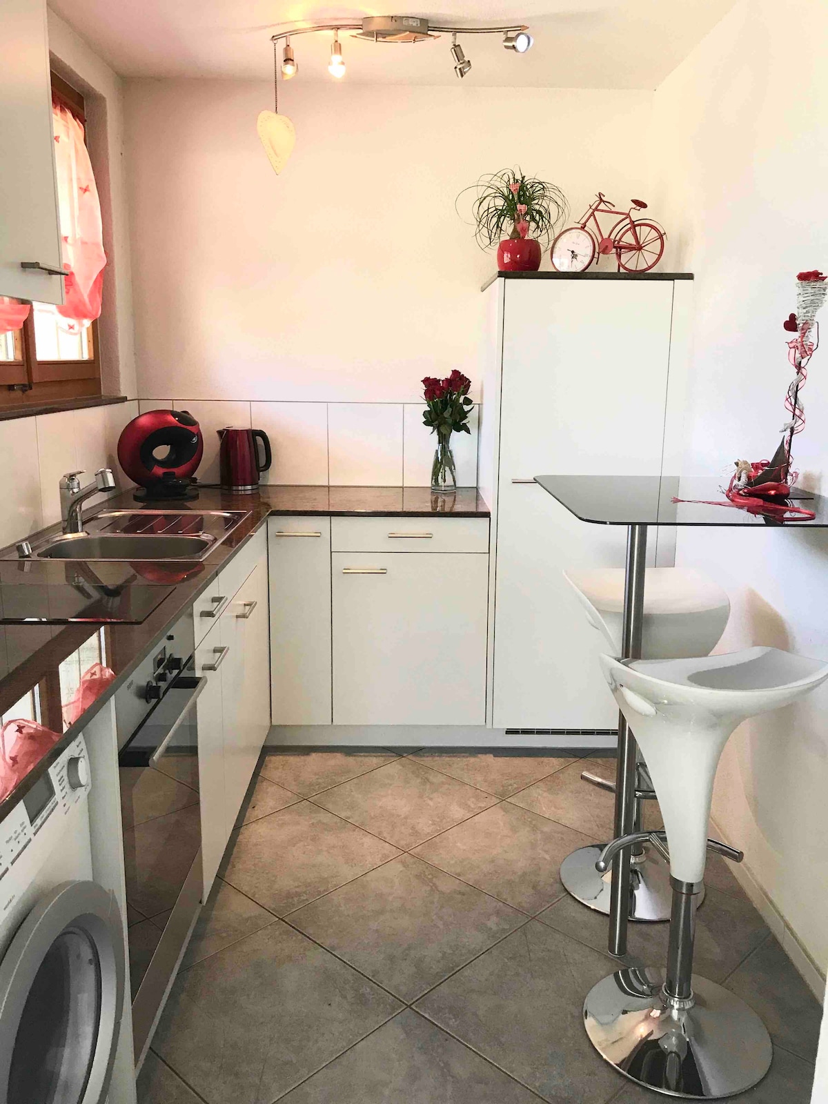 We rent a very nice, newly furnished and cozy 30 m² apartment with separate bedroom. In the open living room with kitchen and dining area, there is a large sofa bed. The apartment has a separate apartment entrance and is on the first floor (no steps). The free parking is right next to the apartment. The apartment is located in the middle of the village and is easy to find. Just three minutes to the bus stop, 40 minutes to Zurich. We, the host family, live on the upper floor.