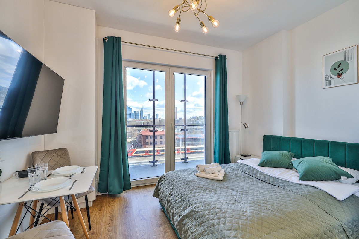 Comfortable, fully equipped apartment in a new building. A living room with an open kitchen divided into a dining and sitting area. The bedroom has a queen bed and a spacious closet. There's also a walk-in closet as an extra storage space. There are shops, restaurants and cafes in the area Equipment: air conditioning, coffee maker, kettle, iron, ironing board, washing machine Directions from Chopin Airport 20 min taxi 50 min communication from Modlin Airport 50 min taxi 120 min communication