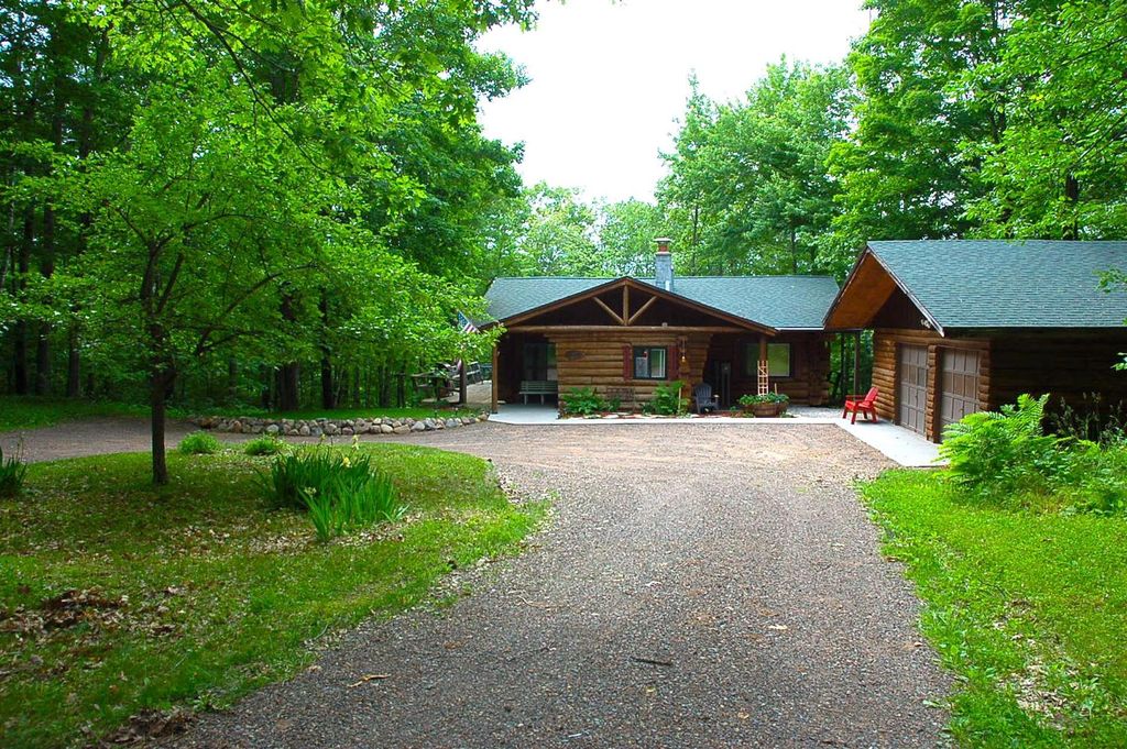 Private, quiet cabins in Northern WI. Property includes miles of walking trails, lake frontage, and room for adventure. Not far from golfing, restaurants, and conveniently located a few miles from town! Main cabin includes kitchen, living/dining area, bathroom, main floor bedroom, and basement bedroom. Guest summer cabin includes comfy seating area, king bed, and electric fireplace. Convenient access to public snowmobile and ATV trails, ATV/snowmobile friendly road right off the driveway.