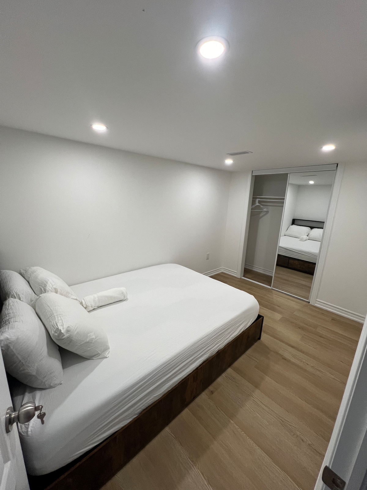 The location of this suite is superb as it is close to Waterloo Regional Airport. This basement apartment with private entrance, features a spacious bedroom and modern bathroom. This suite is ideal for 2-3 guests. Guests can enjoy an open concept living area that also has a dining space and desk area. Located in a quiet neighborhood, close to grocery stores, parks, Grand River walking trails and restaurants. In proximity to Chicopee Ski Hill, Bingemans, and easy access to Hwy 7/8 and the 401.