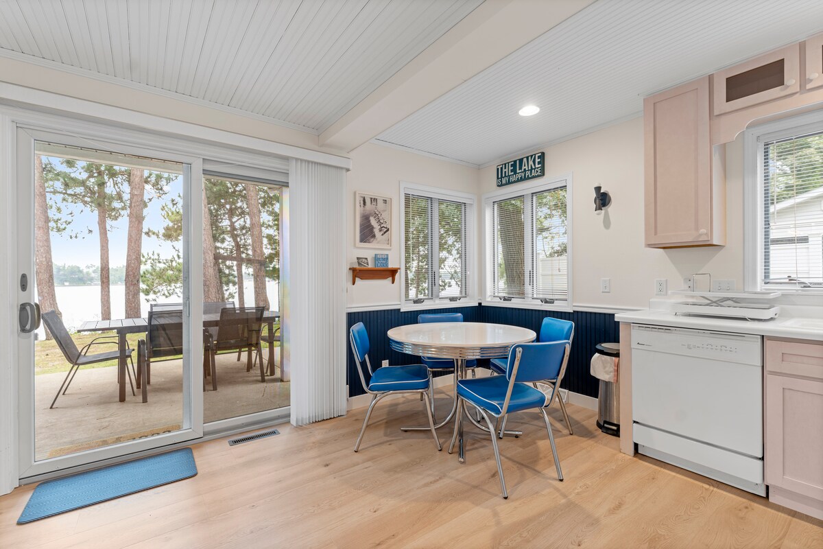 Soak up the modern and vintage charm of our recently updated cottage. Cozy yet open floor plan with large windows and patio doors allow you to enjoy the peaceful view of the water and wildlife right outside your door .Our upstairs loft has 2 beds and serves as our third bedroom. Downstairs fully stocked kitchen spacious dining living area two bedrooms with plenty of closet space a laundry room with washer and dryer so you can enjoy all the comforts of home.