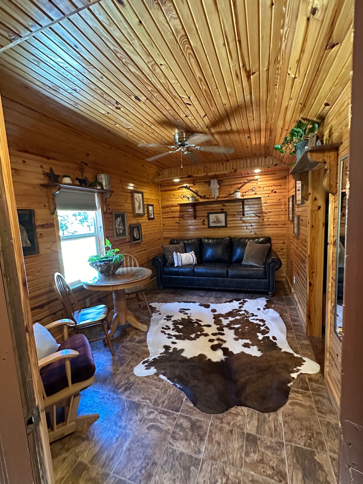 Escape to this unique and peaceful getaway. Relax and enjoy plenty of privacy in our charming modern rustic cabin. With a cozy welcoming atmosphere, this cabin is the perfect place to unwind and create lasting memories. In addition to fresh air and beautiful views, enjoy cozy evenings under the stars, hang out around the fire pit, do some grilling in the outdoor cooking area or enjoy gathering in the silo for fun and entertainment. Get refreshed in the outdoor shower and unique outhouse.