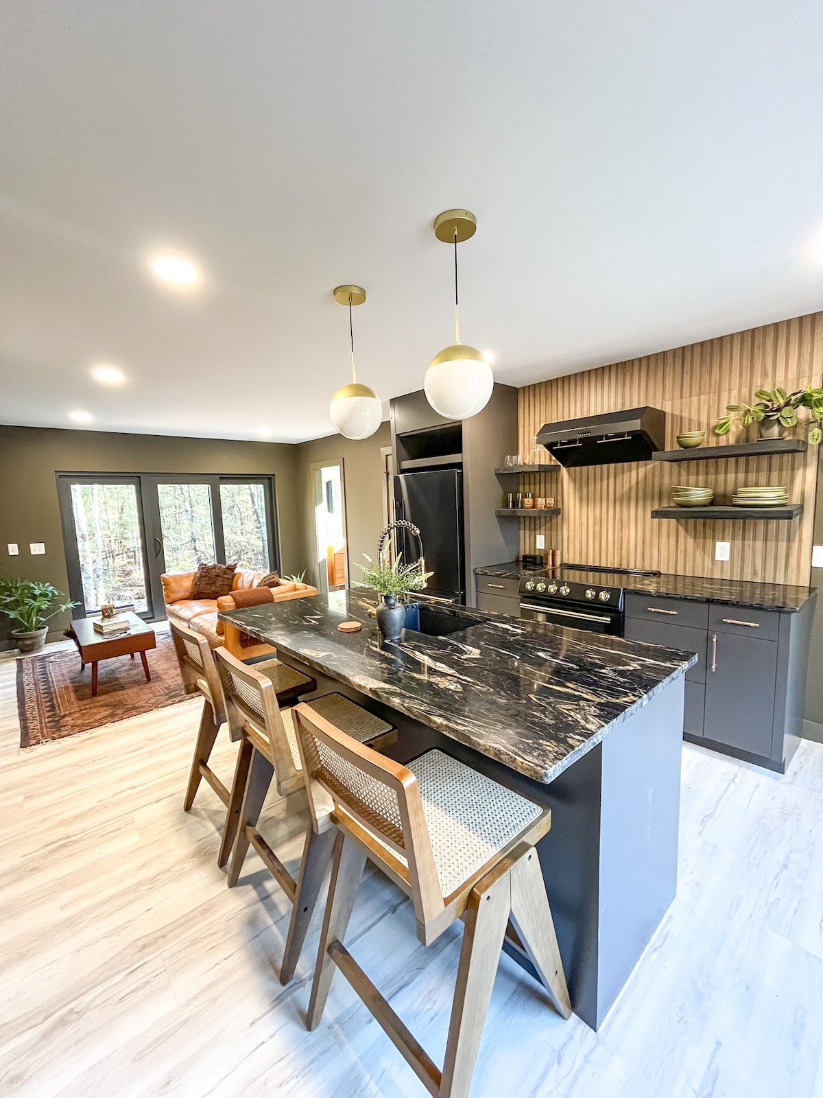Relax and unwind amongst the Maine forest in this beautiful, brand new, two-story modern home. Enjoy large windows showcasing 360° woodland views, an outdoor hot tub and fire pit. This home is located about 10 minutes from the beach, which makes this property extra special because you get the best of what Maine has to offer—the serene forest and endless coastline. Relish in feeling off the beaten path but close to Wells Beach, Ogunquit, Kennebunkport, and other famous Maine beach towns.