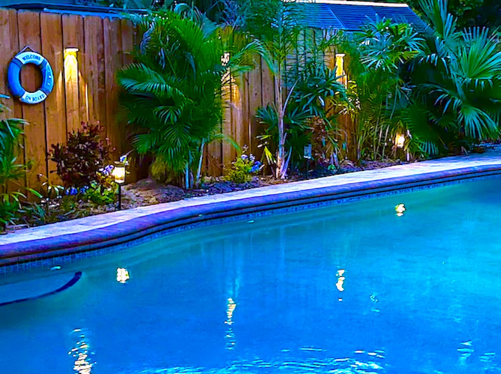 Relax with the family at this tropical oasis. Sunrise Villa sits in the corner of a quiet cul-de-sac, just a quarter mile from Palma Sola Bay and 5 miles from the quaint island of Anna Maria and its sandy white beaches. Enjoy the tropical backyard paradise and the abundance of restaurants, beaches, and entertainment in close proximity. Lounge by the pool, take a bike ride along the bay, take a short bike/car ride over to the island, or take a short car ride to downtown Bradenton.