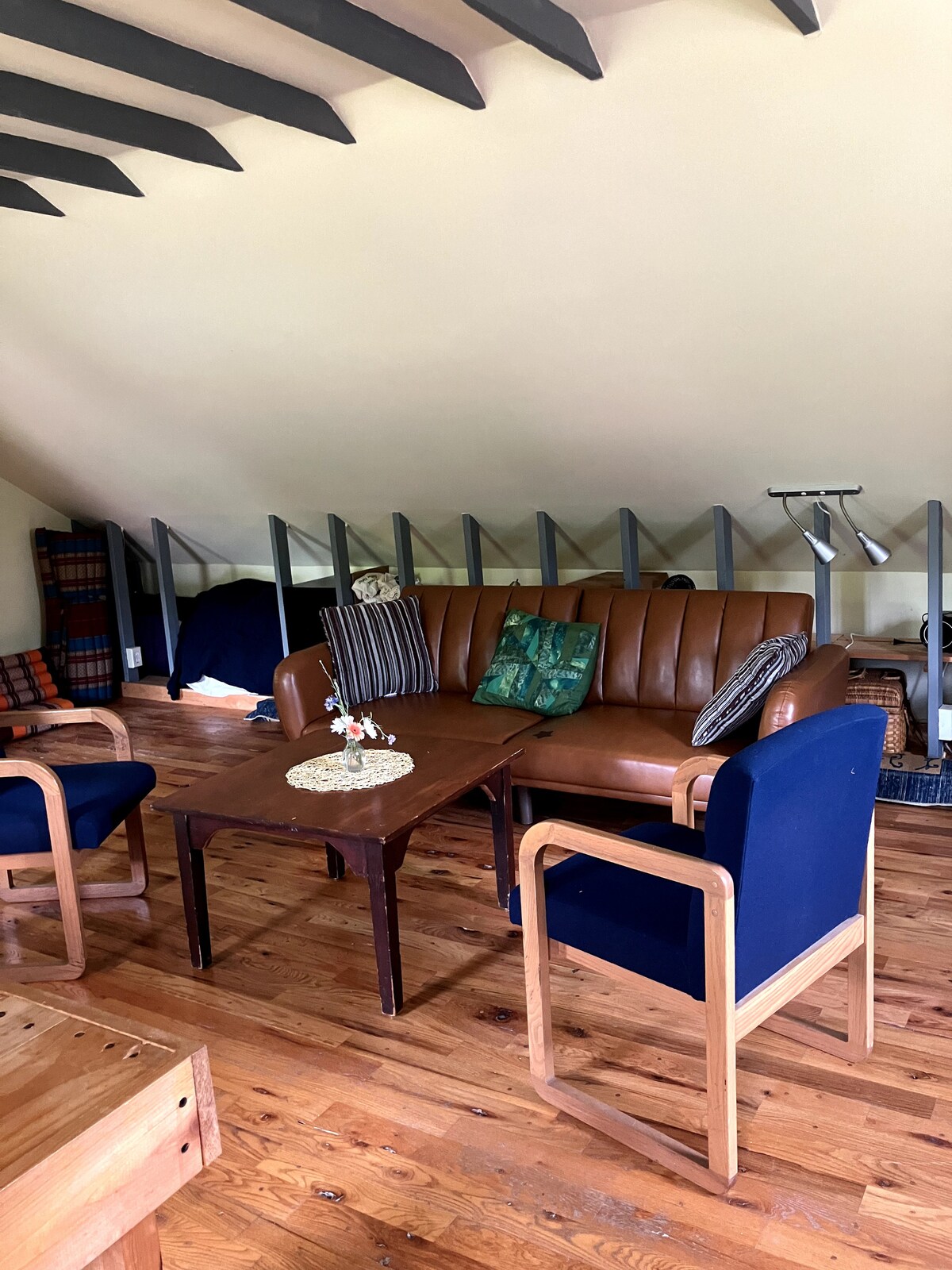 Beautiful, private location at the top of Ithaca Falls. A bedroom with a queen bed for 2, a sofa that can sleep 1, a private bathroom, and living room. There is no kitchen or dining room, but there is a a small dining table, two chairs, a microwave, a coffeemaker with coffee, filters, disposable tableware, a toaster, and a mini-fridge (in the closet). It is a 5-minute drive to downtown Ithaca and Cornell University. Ithaca can easily be reached by car, bike, bus, or foot.