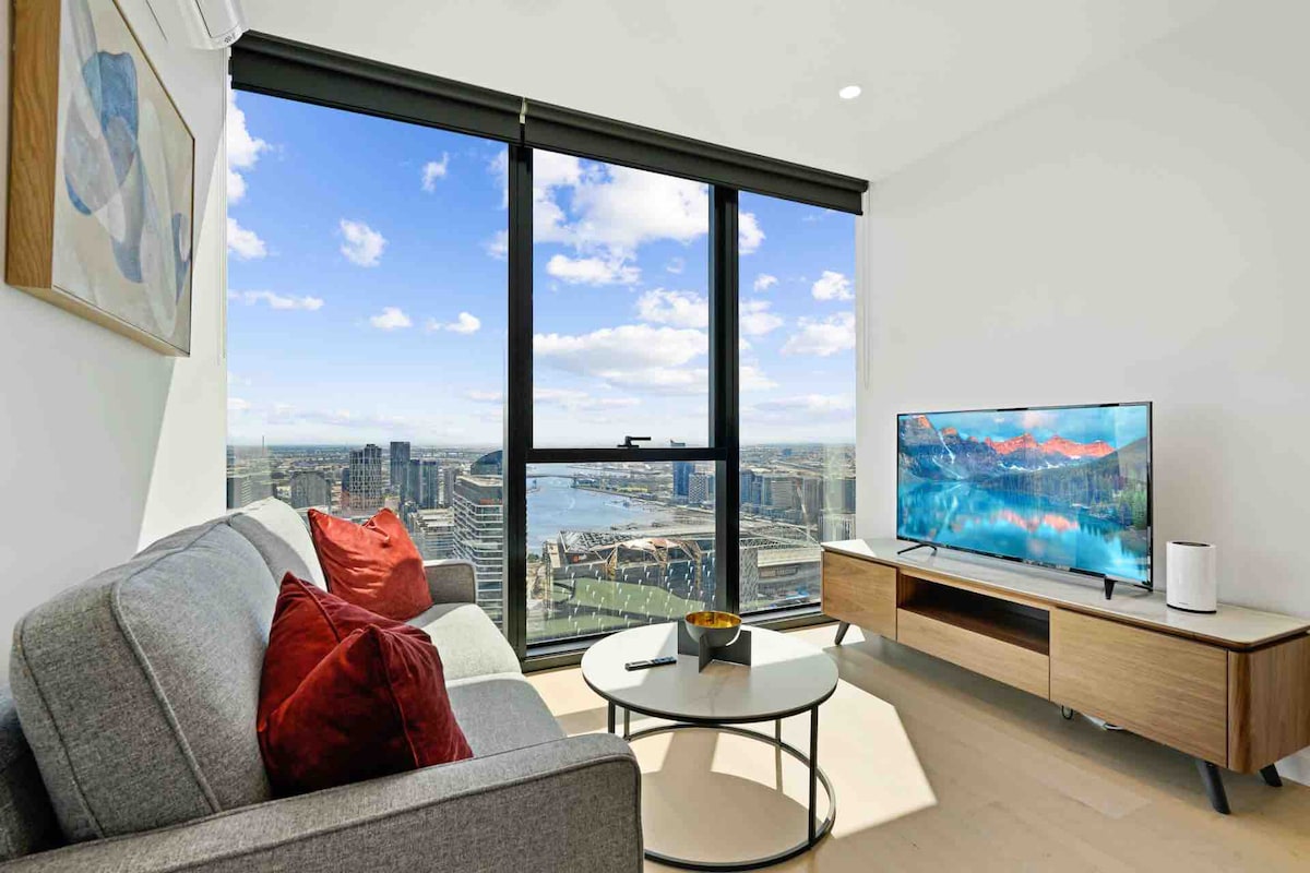 Large 1B1B Apt at 45F located in the heart CBD, luxury decorated with Winter Garden, amazing riverview in city especially brilliant night views as it's on the high floor. nice and cozy place to stay, close to Melbourne Central Station, Victoria Market, supermarkets, trams, restaurants, coffee shops, etc. A wide range of high class restaurants and hotels. Shopping brunch and entertainment are all catered for. Free high speed Wi-Fi. Netflix TV. Make full use of amenities such as the gym, pools.