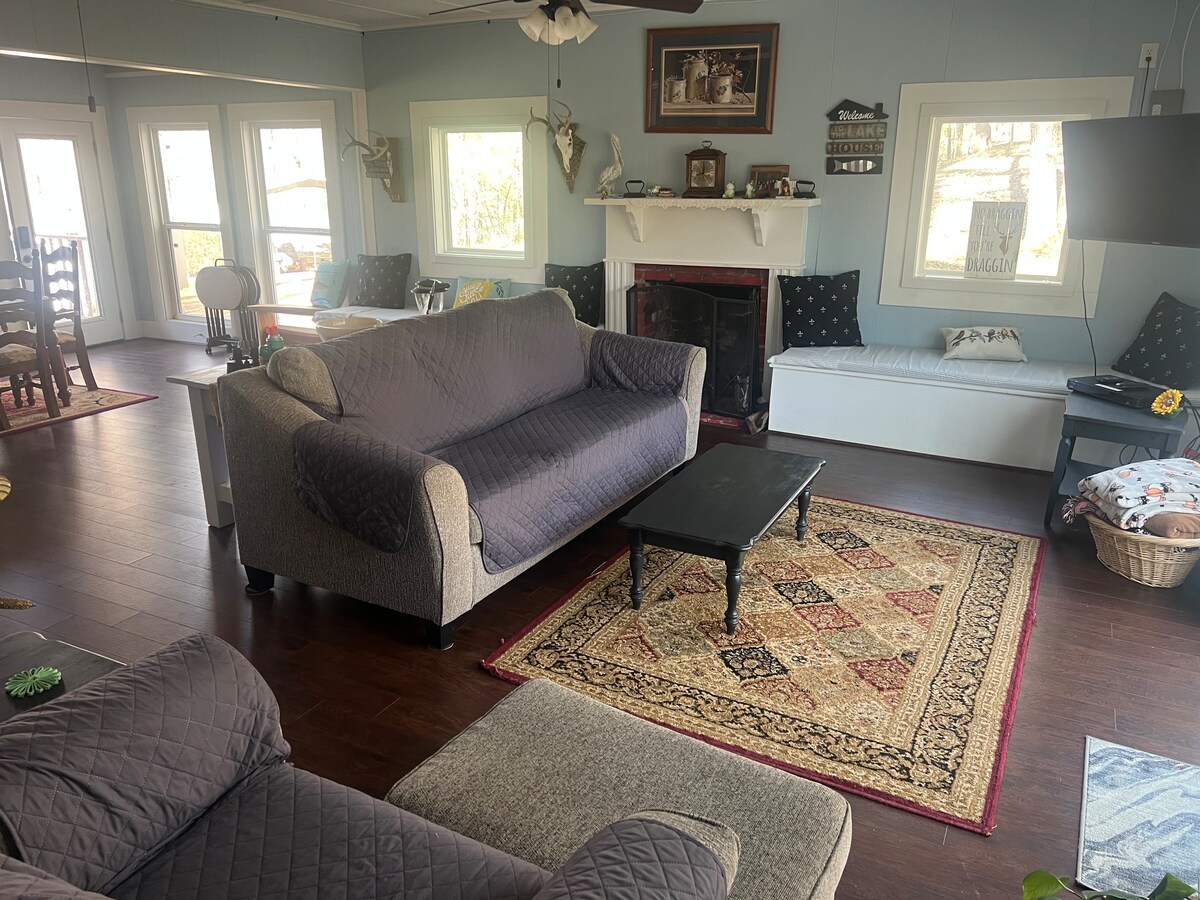 Our father built this house beginning in 1981. It is located on our 40-acre farm, in front of my sister's cottage, about 100 yards from the house I share with our nephew, which was originally built by our grandparents in 1939. It is quiet, remote and peaceful. It is about seven miles to the nearest grocery stores and restaurants in Bastrop, and one mile to a Dollar General in Collinston. There is wifi in the house, as well as a Roku TV.