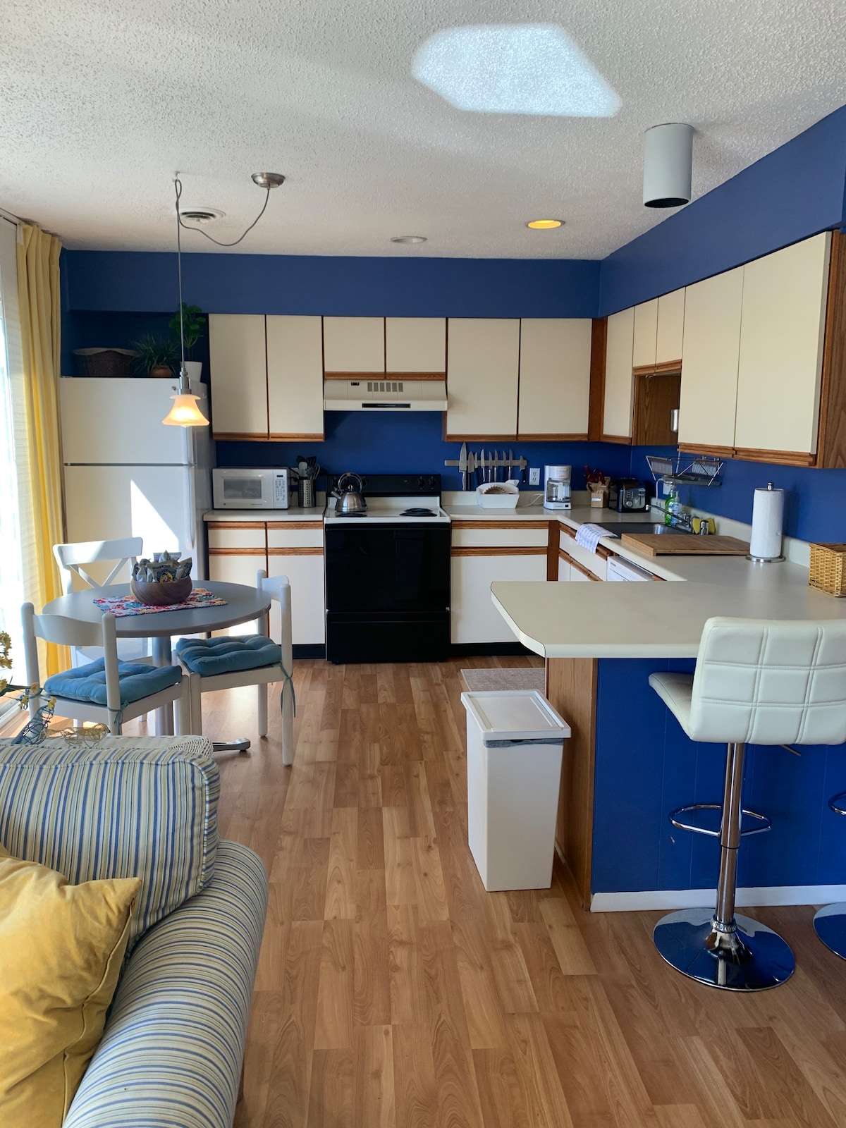You've never seen waterfront like this. Welcome to Edgewater Escape, a luxury bayfront loft apartment that hangs entirely over the bay on 7th street in downtown Ocean City. Sit on the bay front porch or hang out inside and watch boats, dolphin, birds, and sometimes even seals swim by within feet of the porch. The loft has a roomy king sized bed and the downstairs couch pulls out into a comfy queen bed. Recently renovated, it comes fully equipped for your big trip or quiet staycation :)
