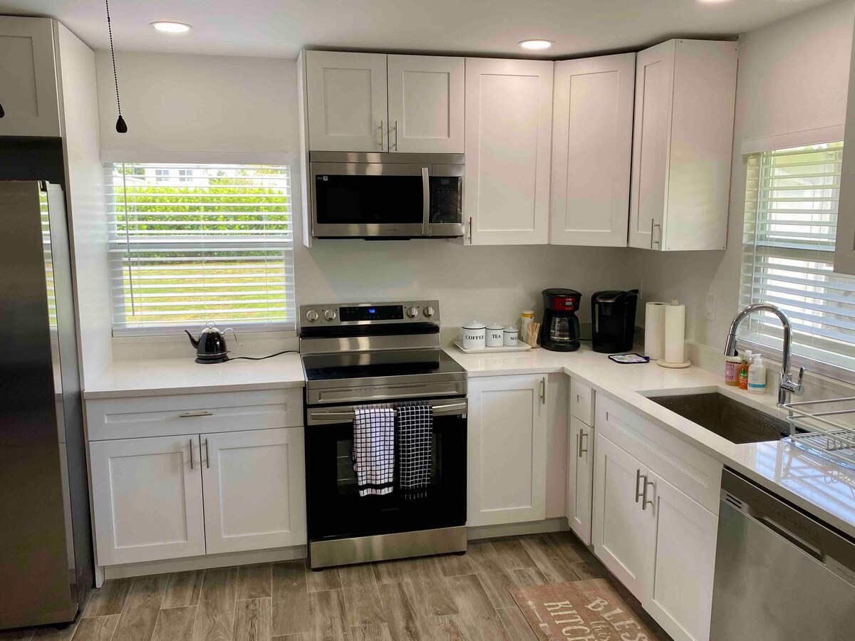 Light, bright, and clean Key West Style cottage back house nestled in the historic district downtown West Palm Beach. Steps from a beautiful park (dog park/playground/tennis/basketball). Located close to everything (beach, shopping, dining.) Fully equipped with a kitchen, a queen bed master suite with large closet, laundry room, dinette, living room with HD TV, and private outdoor dining with grill. Private entrance with two beach cruisers supplied for the enjoyment of your stay!